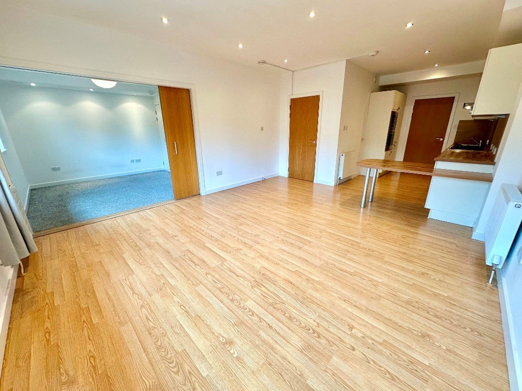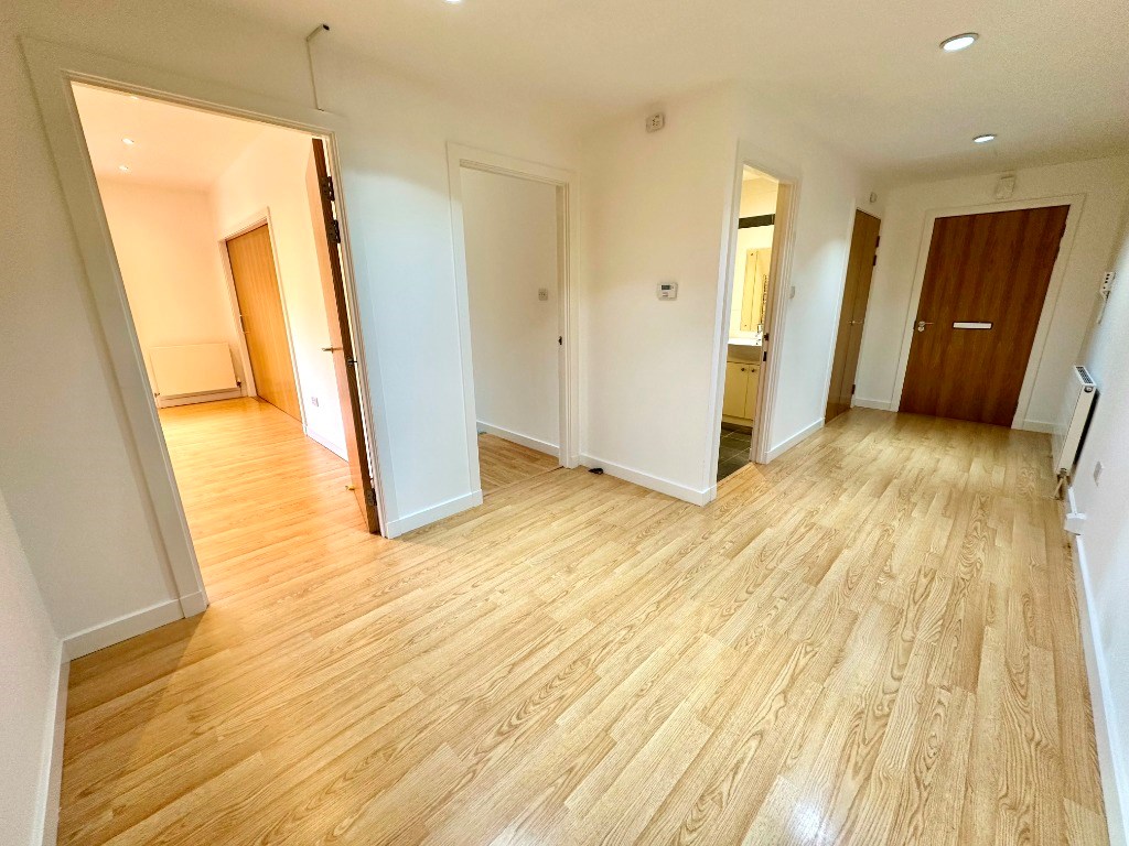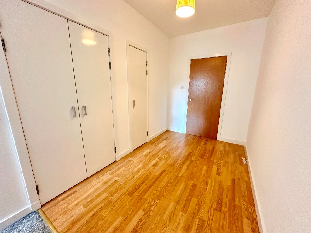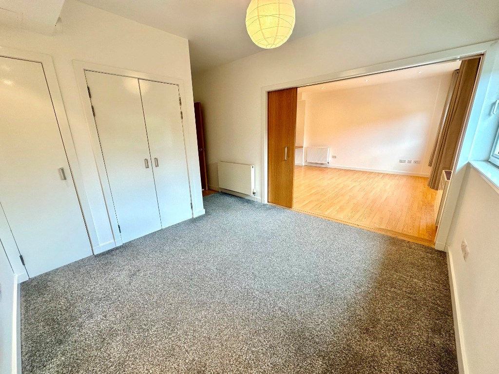This spacious unfurnished apartment comprises of large reception hallway which opens out to all rooms, bright open plan lounge / fitted kitchen with modern fitted units and integrated appliances including fridge freezer, dishwasher, microwave, washing machine, gas hob and electric oven, two good sized double bedrooms, the master having fitted wardrobe space and an en-suite shower room off and the second bedroom also having fitted wardrobes but also a sliding access panel through to the living room. Finally, the family bathroom which has a white three piece bathroom suite with shower attachment over the bath.