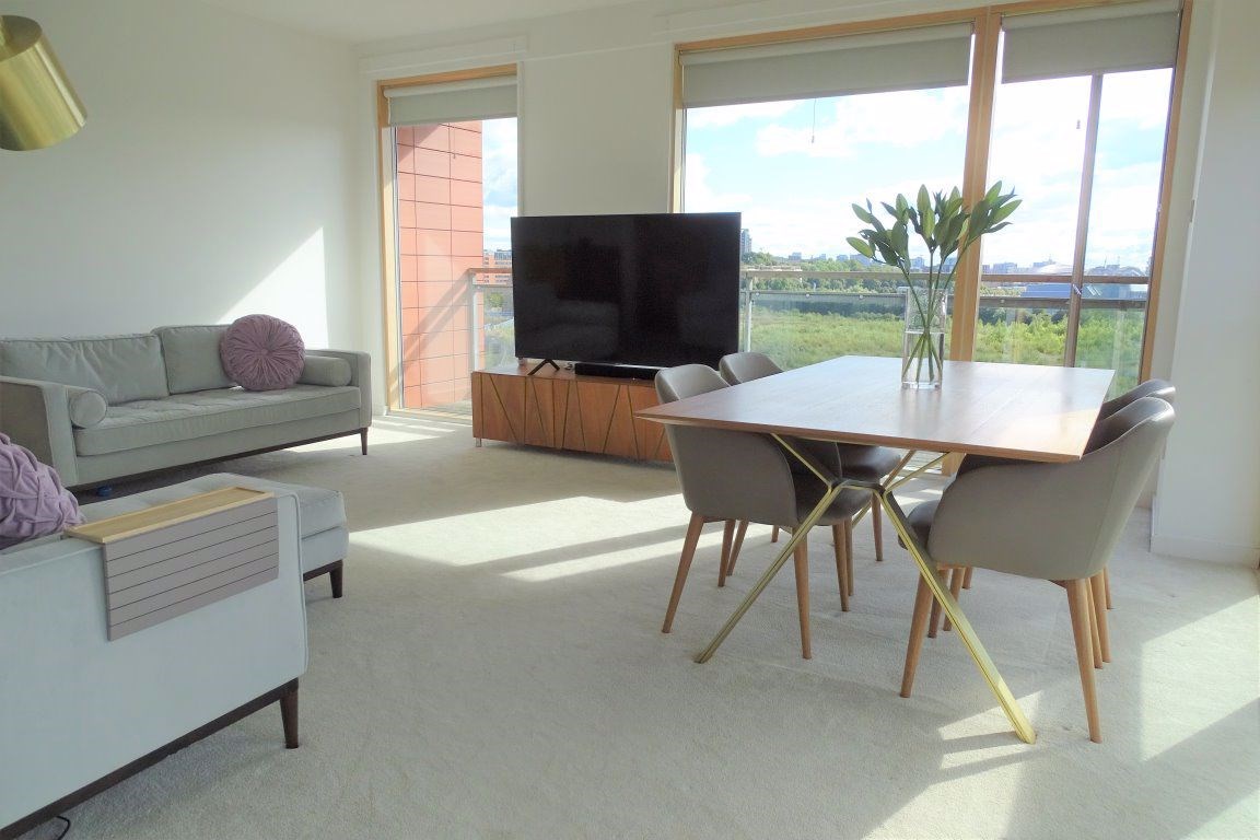 Not available to students - This is a particularly stylish and spacious 7th floor 2 bed apartment occupying a wonderful corner position and extending circa 1000 sqft with private terrace and two sets of south facing double doors.