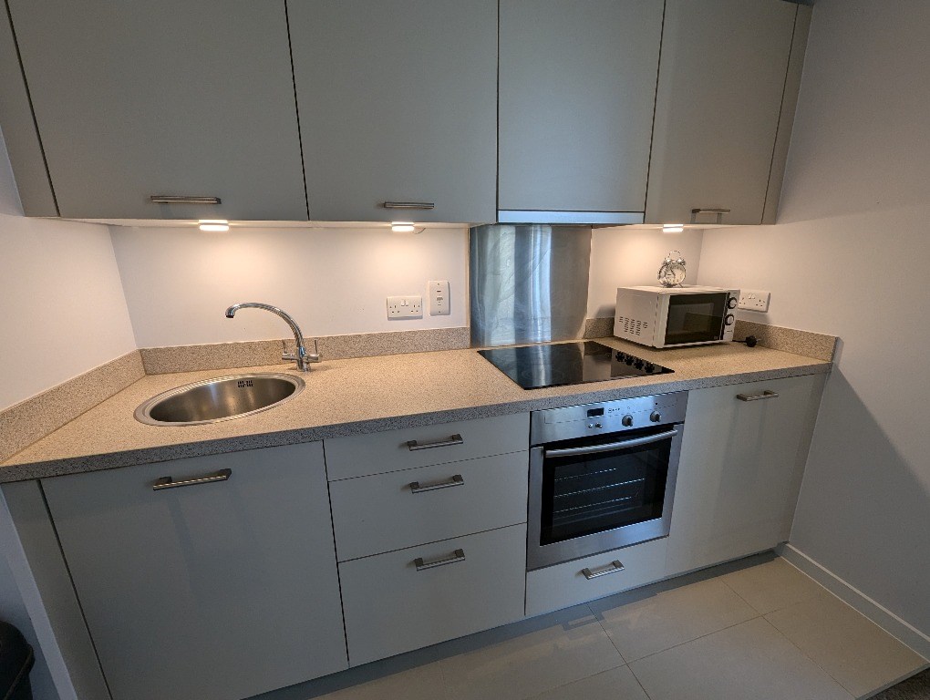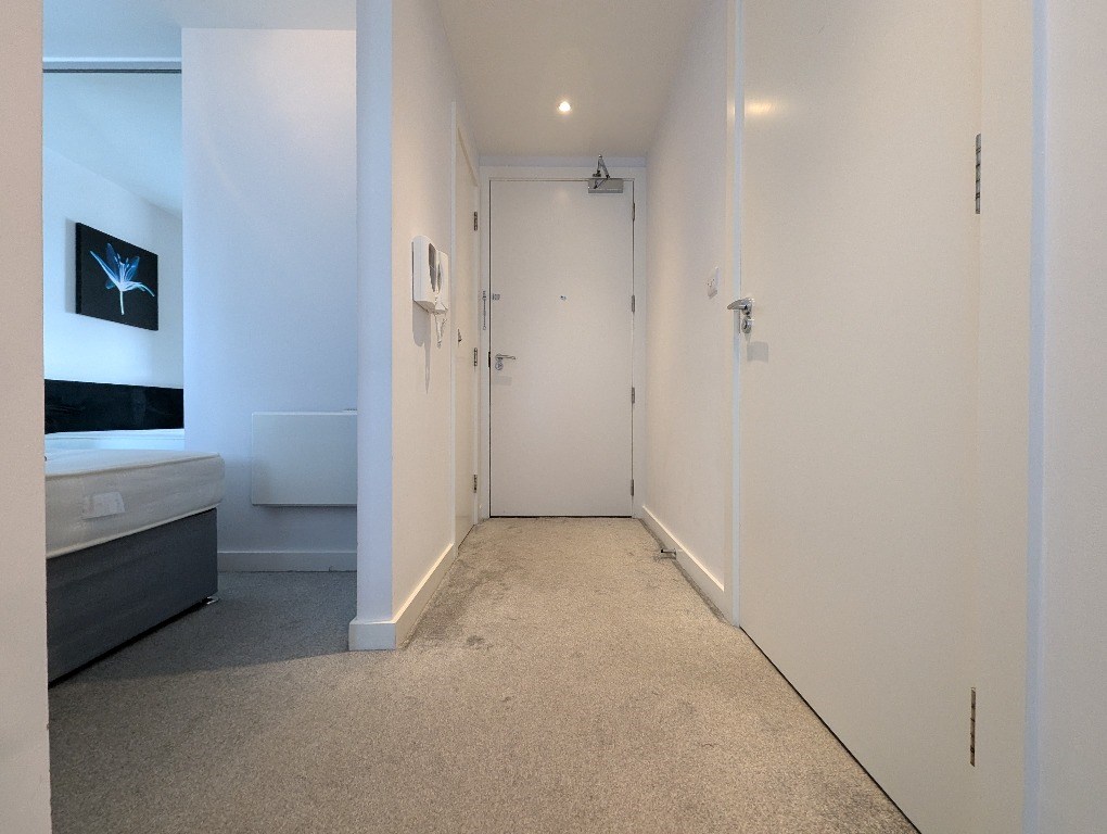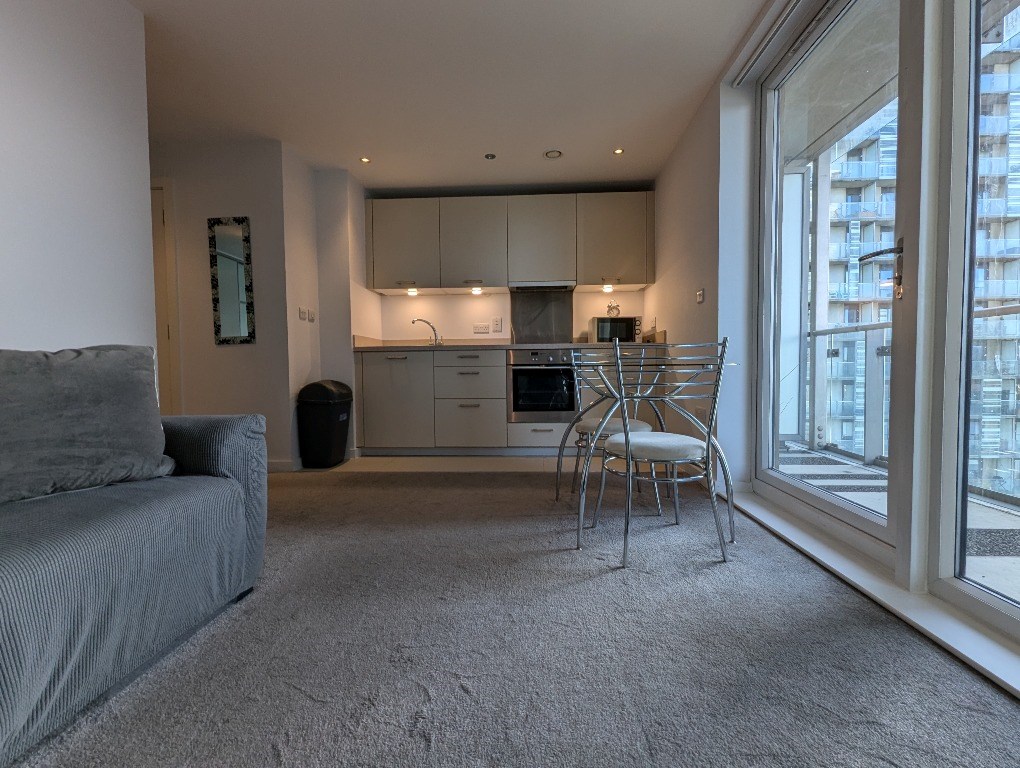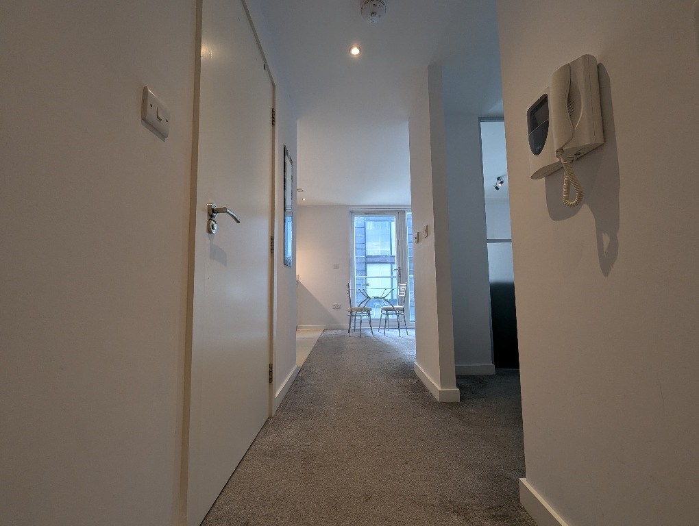 Internally, the property comprises of an open plan living room/kitchen, double bedroom with built in storage, bathroom with electric shower, and balcony which offers views over the internal courtyard and the River Clyde. The property also benefits from a secure video entry system, electric heating throughout, and floor to ceiling windows in the living room.