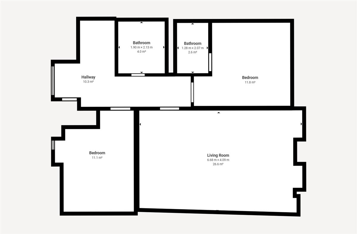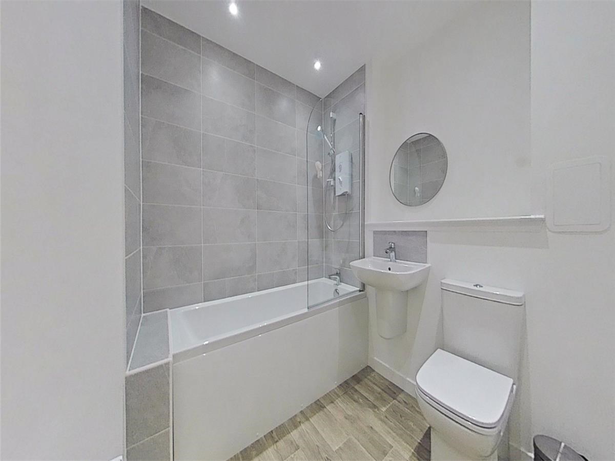Internally, the property comprises a spacious and bright open plan living room/kitchen. The kitchen provides ample storage and workspace, and benefits from an electric hob, extractor fan, and large double glazed windows which enhance the light-filled feel of the space. The property further features two generously sized bedrooms, all offering sufficient space for freestanding furniture as well as the master benefiting from a ensuite. The accommodation is completed by a separate well-appointed three-piece bathroom.