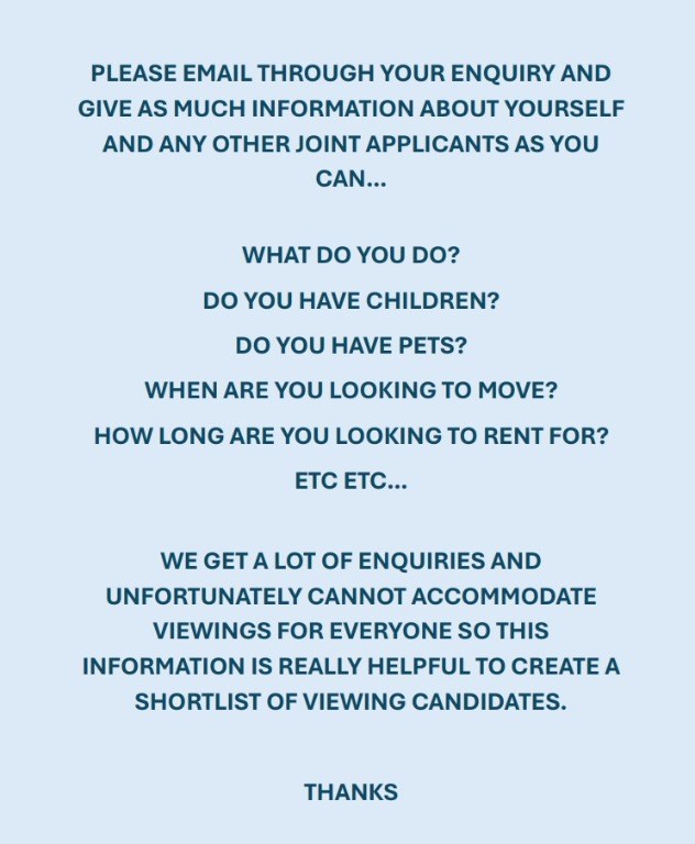 PLEASE EMAIL YOUR ENQUIRY GIVING AS MUCH INFORMATION ABOUT YOURSELF AND ANY OTHER APPLICANT