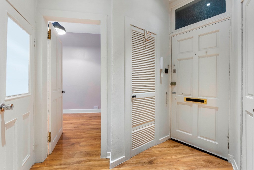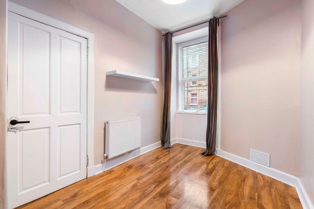 Light and tastefully presented one-bedroom ground floor flat, forming part of a traditional stone-built tenement in the popular Gorgie area, just west of Edinburgh city centre. This charming property offers a prime city location with excellent transport links and local amenities on the doorstep. Internally, the accommodation is well-proportioned and finished to a high standard throughout. The welcoming entrance hall includes a built-in storage cupboard, space for coats and shoes, and an entry phone system. The bright and spacious living room features stylish wood flooring, two traditional press cupboards, and a versatile offset area ideal for dining or use as a home office. The modern fitted kitchen is equipped with sleek cabinetry, an induction hob, electric oven, and a freestanding fridge/freezer, offering both functionality and style. The generously sized double bedroom continues the theme of tasteful presentation, with attractive wood-effect flooring and ample space for freestanding furniture. A contemporary shower room completes the accommodation, fitted with a stylish three-piece suite, including a walk-in shower with modern tiling. Further benefits include gas central heating, double glazing and shared garden to the rear.