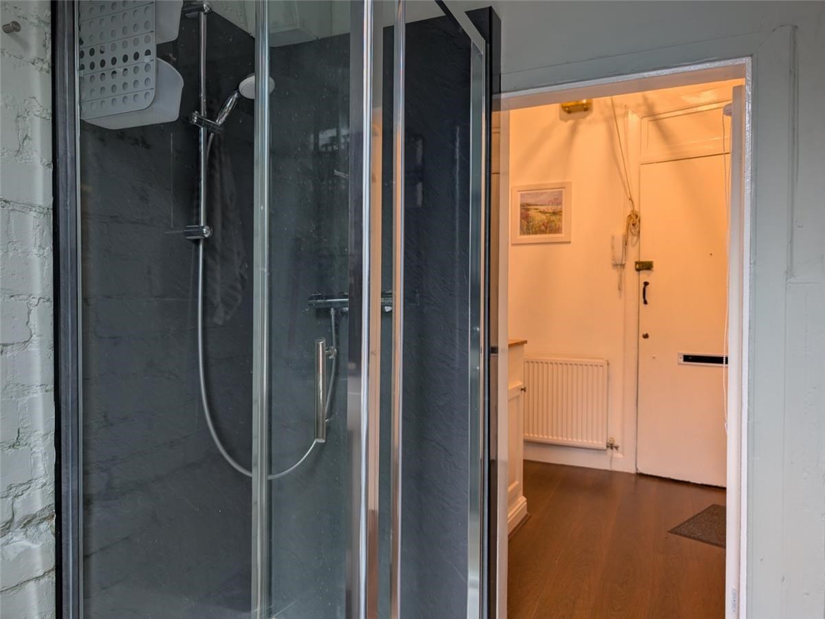 The accommodation comprises of a living room with dining area, a fitted kitchen set just off, one double bedroom with built-in wardrobe and storage cupboard, and a shower room featuring exposed brickwork and a mixer shower. The property further benefits from gas central heating, double-glazed windows, and entry system. Externally, residents have access to a shared rear garden, while on-street permit parking is available.