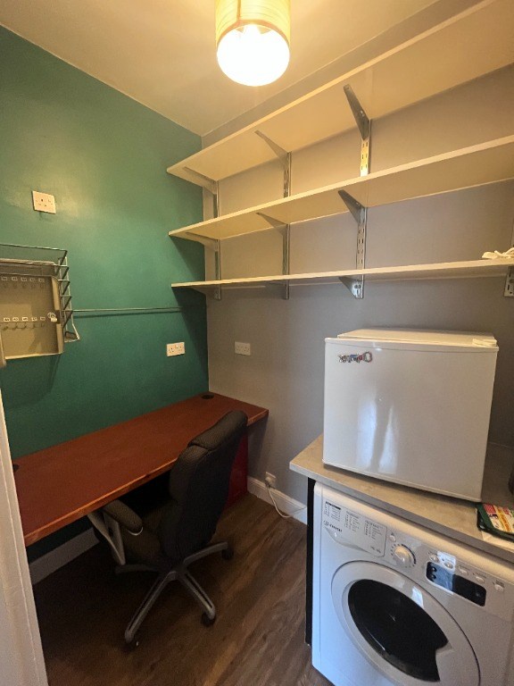 The property offers a bright and comfortable living space, comprising a spacious kitchen/living room which is currently complemented by a box room set up as a practical home study, ideal for those working remotely. The generous double bedroom benefits from a modern shower room located just off, while a separate WC adds further convenience.