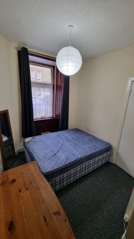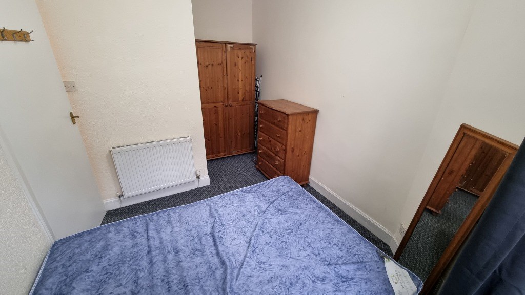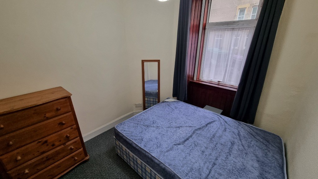 This furnished one bedroom ground floor flat comprises entrance hallway with small storage cupboard, lounge with separate kitchen off, small double bedroom, bathroom with shower over bath, and separate WC.