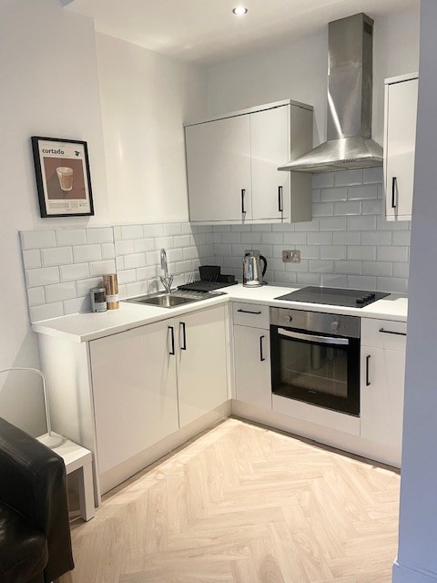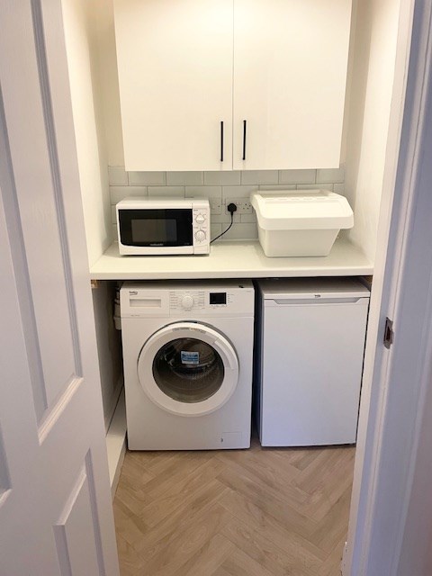 With a super-modern kitchen and bathroom, utility room for washing machine and fridge, a separate study room and spacious double bedroom, it’s a super-cool flat.