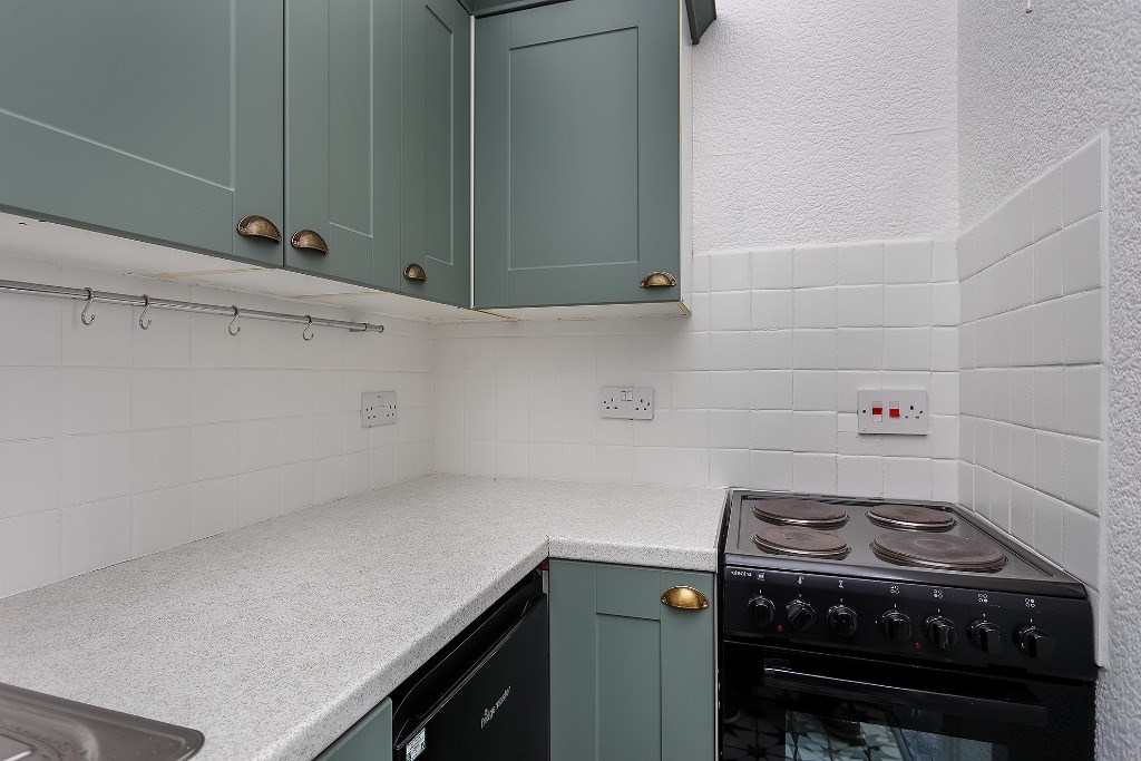 The flat comprises of a south-facing living room with feature fireplace, practical kitchen with modern wall and base units, a large double bedroom offering large built-in wardrobe, and a quality shower room, in excellent decorative order throughout and entrance hallway with storage cupboard.