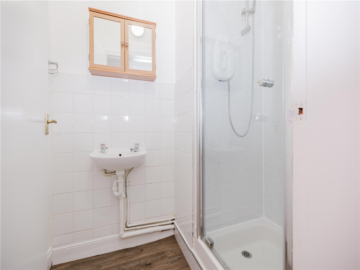 ~Shower room with tiled splashback and wash-hand basin