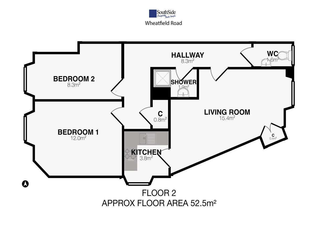 ~Total floor area = 55m²