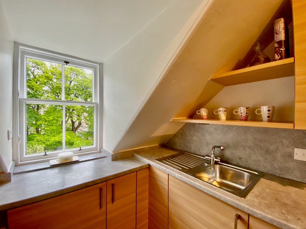 This UNFURNISHED top floor attic style flat is situated on the 2nd floor of a beautiful converted house in the prestigious Grange & Marchmont area of the city and benefits from a lovely open outlook both front and back, allowing bright sunlight to beam in through the large windows.