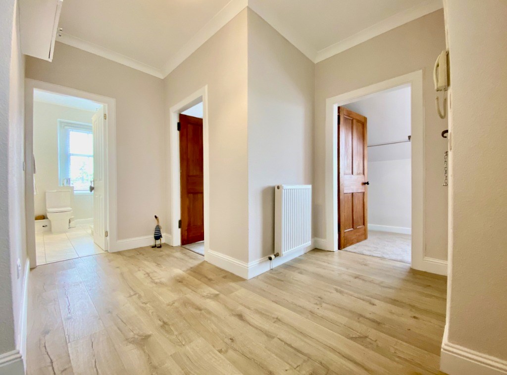 Accommodation begins with a large and spacious hallway. The high specification kitchen and lounge face out to the back of the building over lovely gardens and enjoys an open aspect. Both rooms feature characterful combed ceilings, with the lounge having a charming bay window, sanded floors and fireplace.