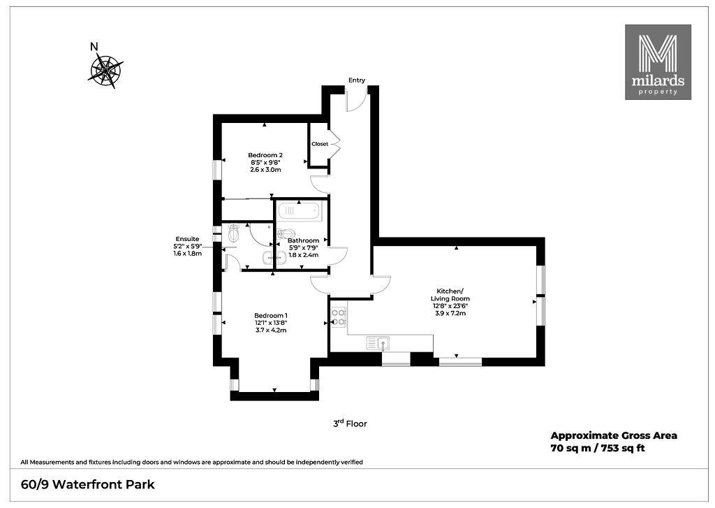 This accommodation comprises; entrance hall, open plan lounge/fitted kitchen area with appliances, two double bedrooms, one with en-suite and completing the property is a family bathroom.