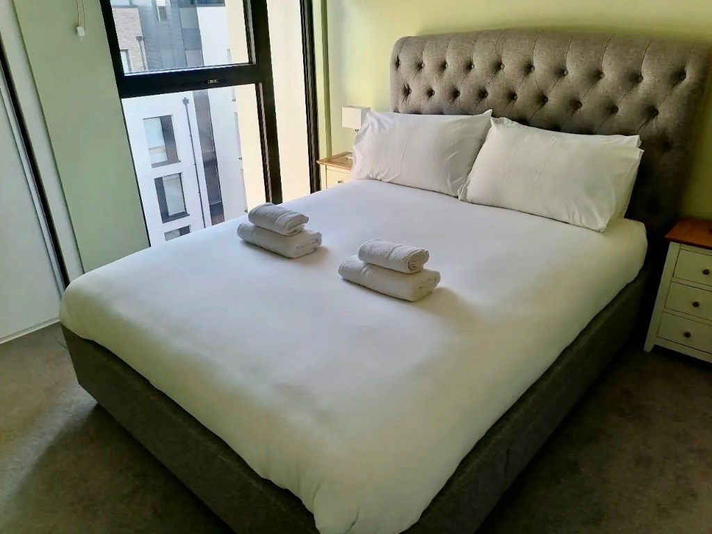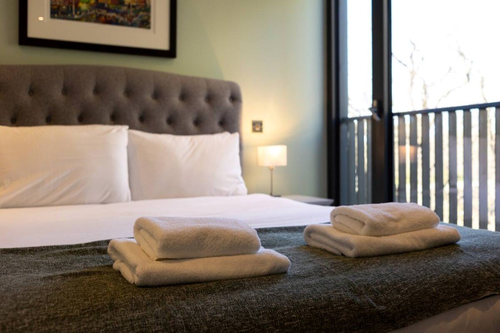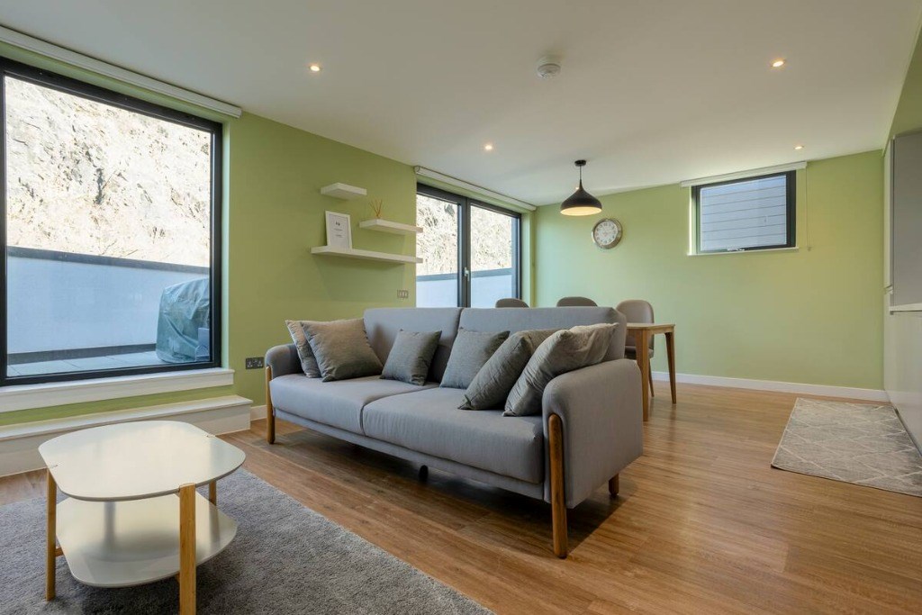 The lounge area is fresh, neutral and spacious offering the ideal place to kick up your feet and relax after a long day and enjoy some stunning views of Edinburgh Castle from your very own private terrace.