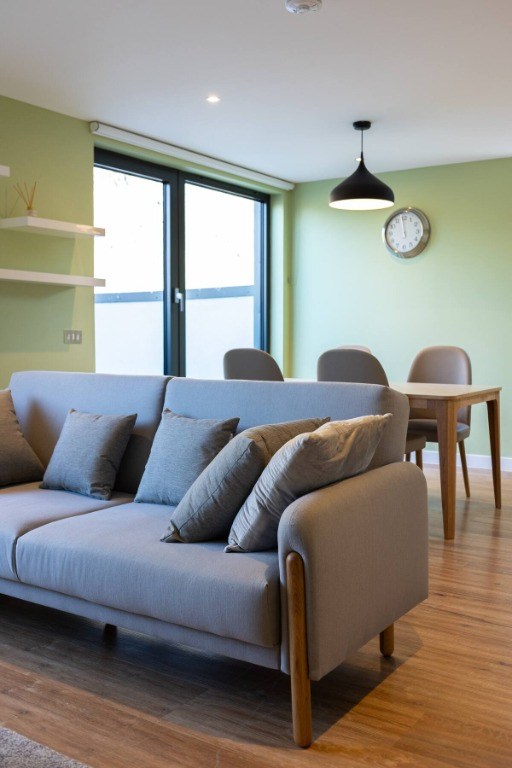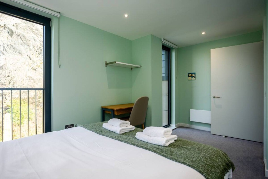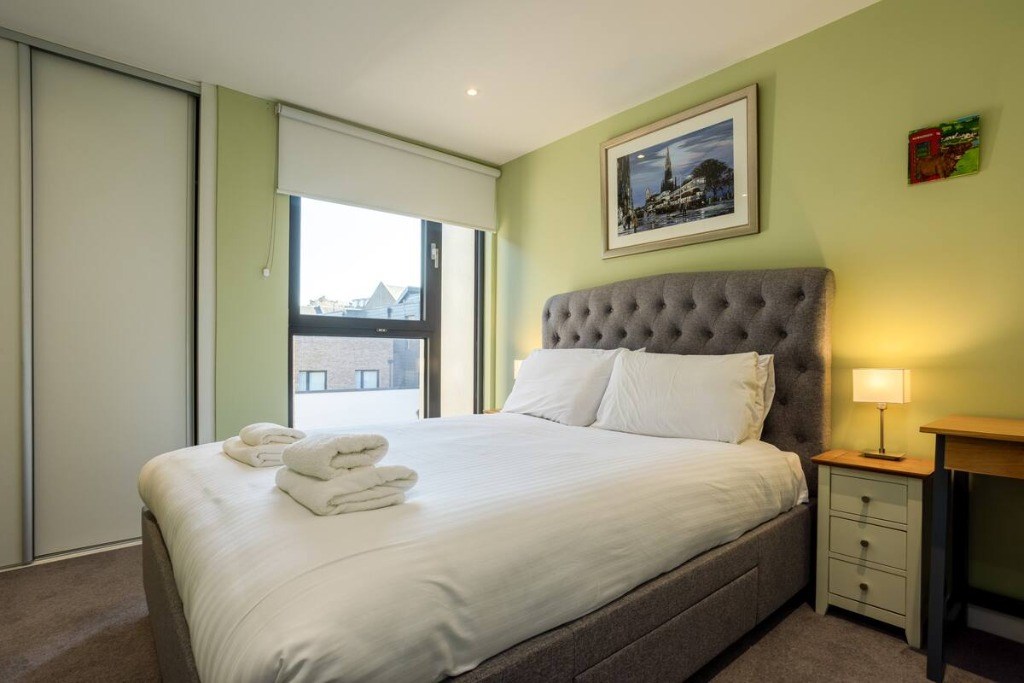 The lounge area is fresh, neutral and spacious offering the ideal place to kick up your feet and relax after a long day and enjoy some stunning views of Edinburgh Castle from your very own private terrace.