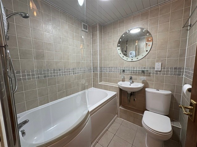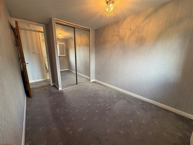 The property is on the second floor and has a large bright, airy lounge with neutral decor. This theme is continued into the double bedroom which has a large fitted wardrobe with sliding doors.