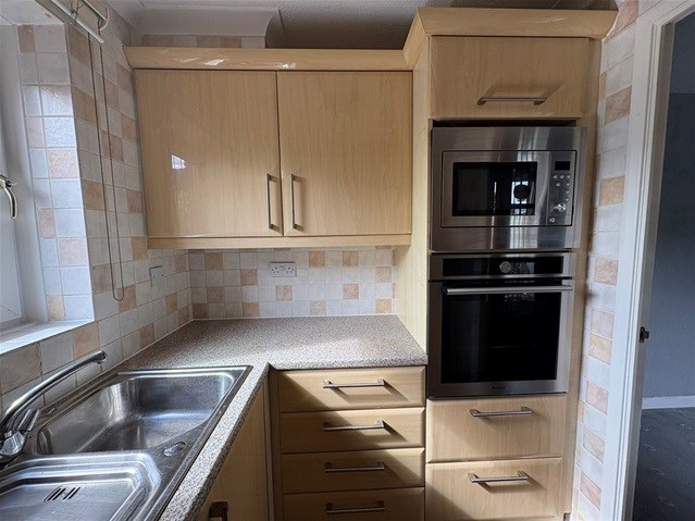 The kitchen has ample work surface and storage and comes with selected appliances.