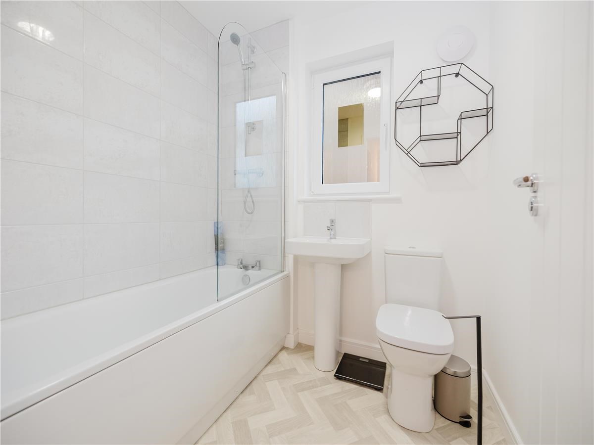 ~Stylish bathroom suite with tiled splashback and mains shower over bath