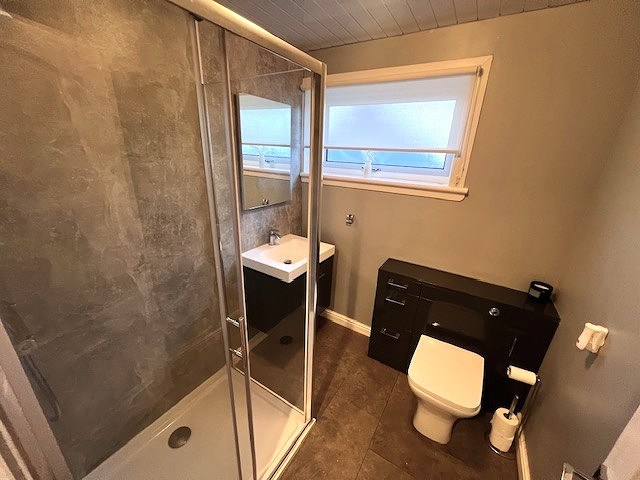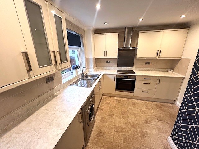 This spacious and freshly presented two-bedroom house is set within a popular and well-established residential area of Hamilton, offering bright modern interiors, generous room sizes and a peaceful outlook. The home features a large lounge with attractive wood-effect flooring, a modern contemporary fitted kitchen complete with ample worktop space and integrated appliances, two well-proportioned double bedrooms decorated in neutral tones, and a beautifully refurbished shower room with a large walk-in enclosure. A roomy entrance hallway, excellent built-in storage and gas central heating further contribute to the practicality and comfort of the property. The property further benefits from front and rear private well maintained gardens.