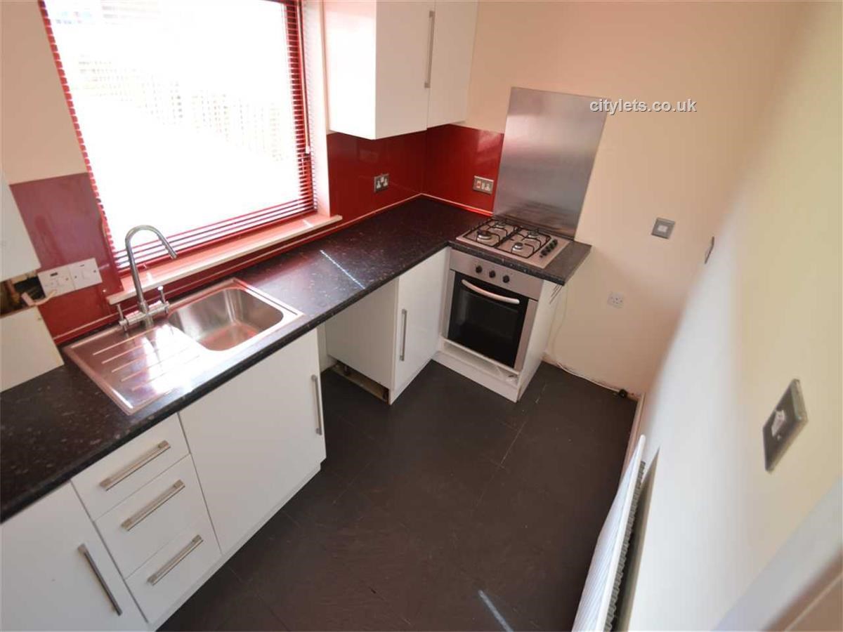 How about a modern kitchen with white gloss units and tiled flooring?