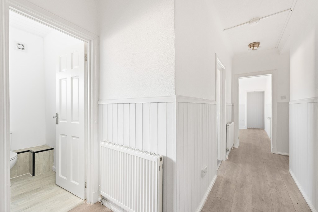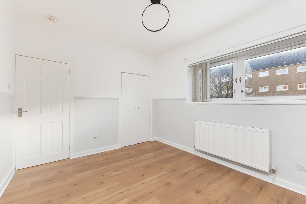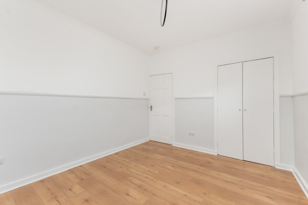 The property offers two double bedrooms, both featuring built-in wardrobes for ample storage. A separate reception room benefits from large windows and wood floors, creating a bright living space with direct access to a balcony. The kitchen enjoys plentiful natural light and provides a practical setting for meal preparation. The flat includes one bathroom, contributing to the overall functionality of the home.