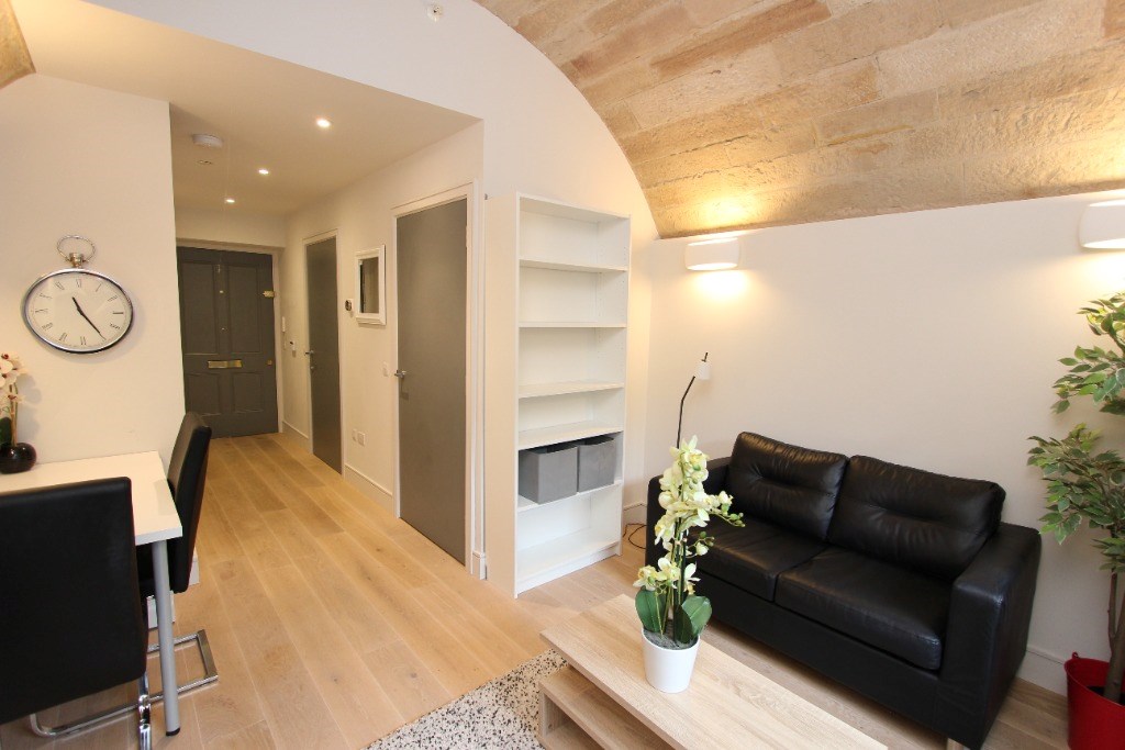 This property is set in a Grade A Listed palatial building within Edinburgh’s World Heritage Site boundary. It comprises of a bright open plan living room adjoined to a modern fully fitted kitchen, a lovely 3 piece bathroom suite and a double bedroom with a built in wardrobe. The property further benefits from ample storage options and an underground, secure parking space.