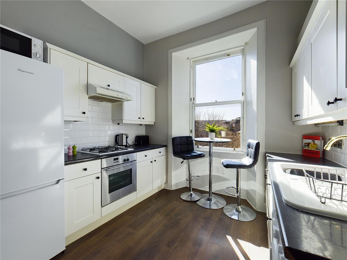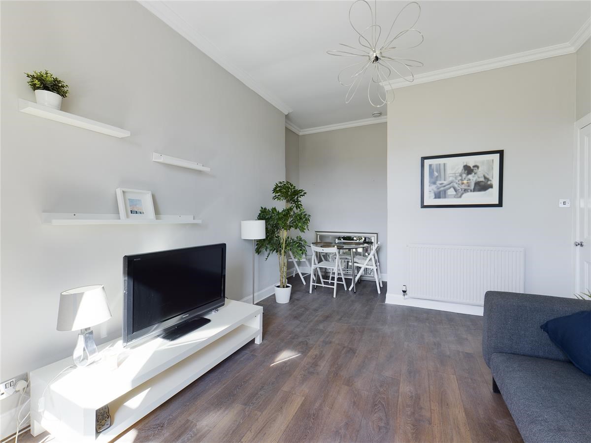 Traditional bright and spacious, top floor, two double bedroom, tenement flat in the popular Haymarket/Fountainbridge area of Edinburgh. The property benefits from gas central heating. There is a lovely shared garden to the rear of the property. The property comprises of;