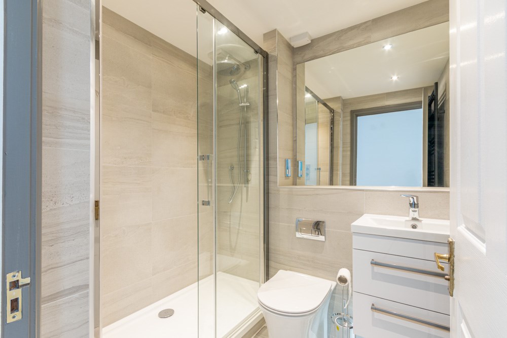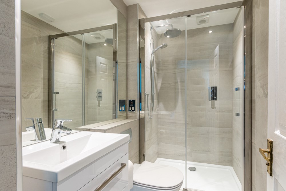 ~Luxurious shower room with stylish three-piece suite including walk-in shower