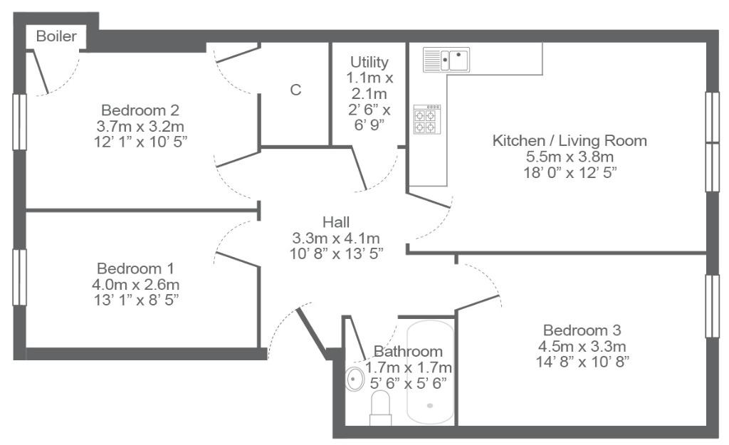 The accommodation comprises of spacious hallway which gives access to all rooms, internal bathroom with white three piece bathroom suite and electrics shower over the bath, internal utility room which houses the washing machine, open plan living room and kitchen which comes complete with appliances including fridge freezer, ceramic hob and electric oven and three fully furnished good sized double bedrooms.