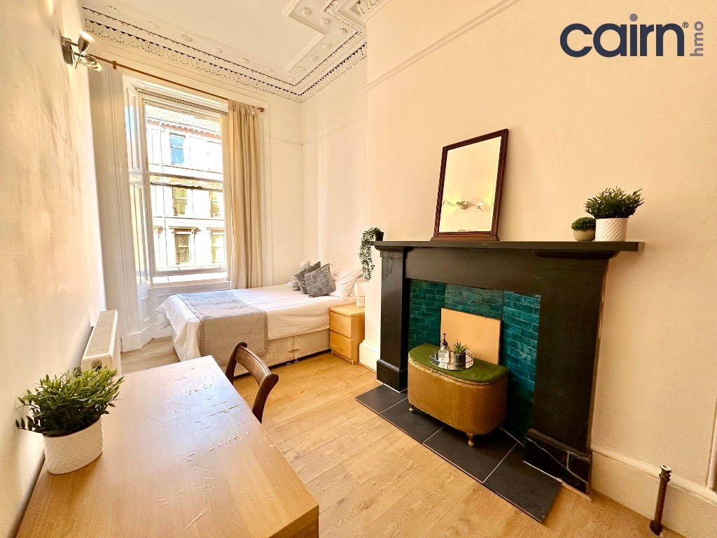 An eight bedroom first floor fully furnished HMO property situated within a traditional red sandstone tenement building in popular Kersland Street in the West End of Glasgow.