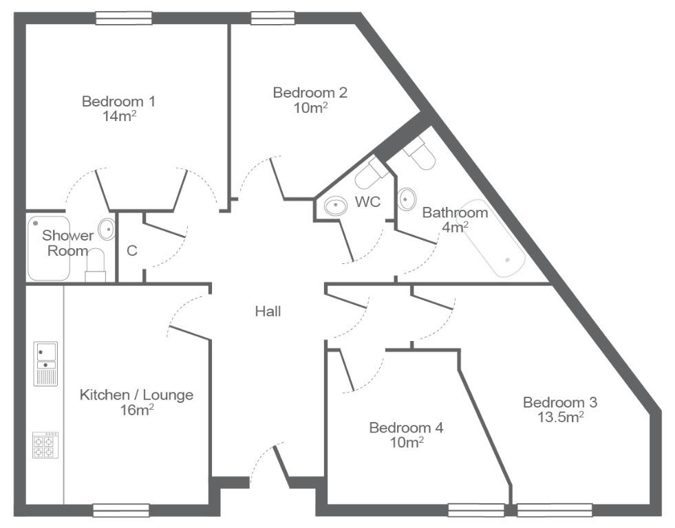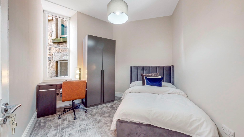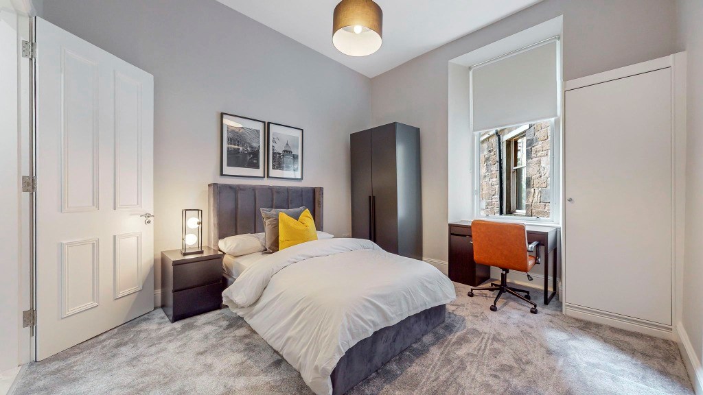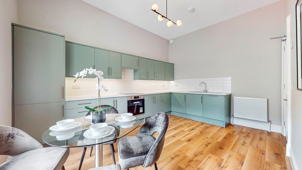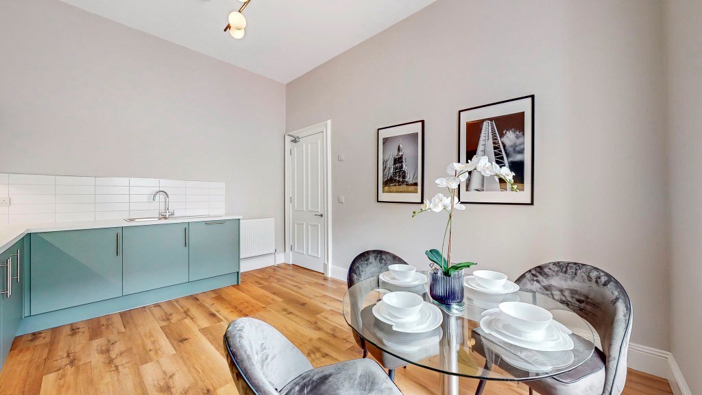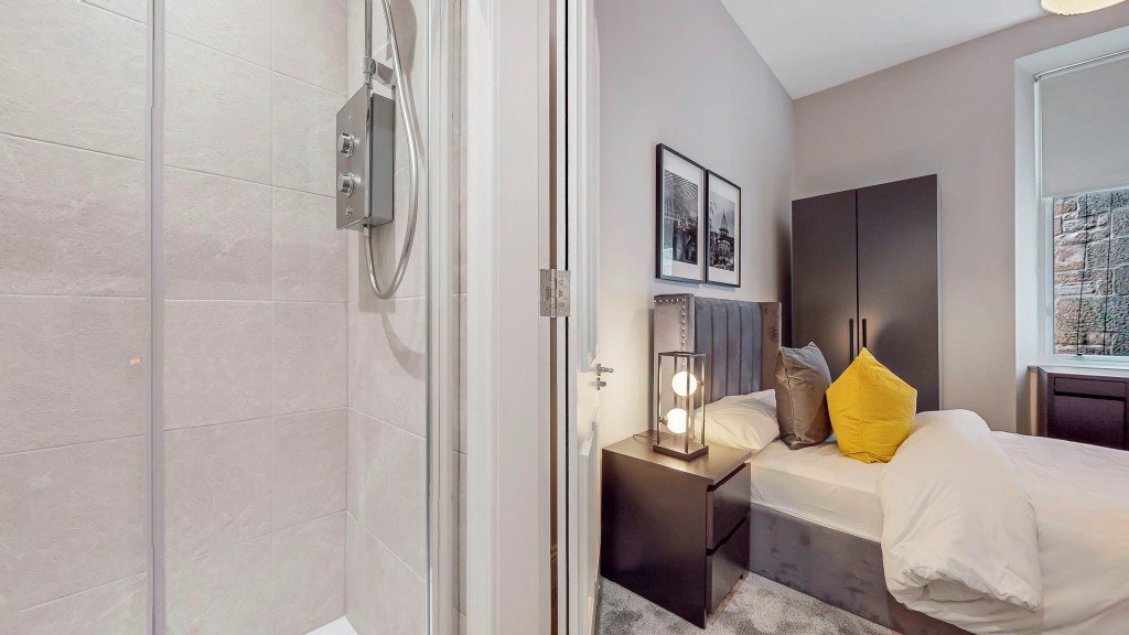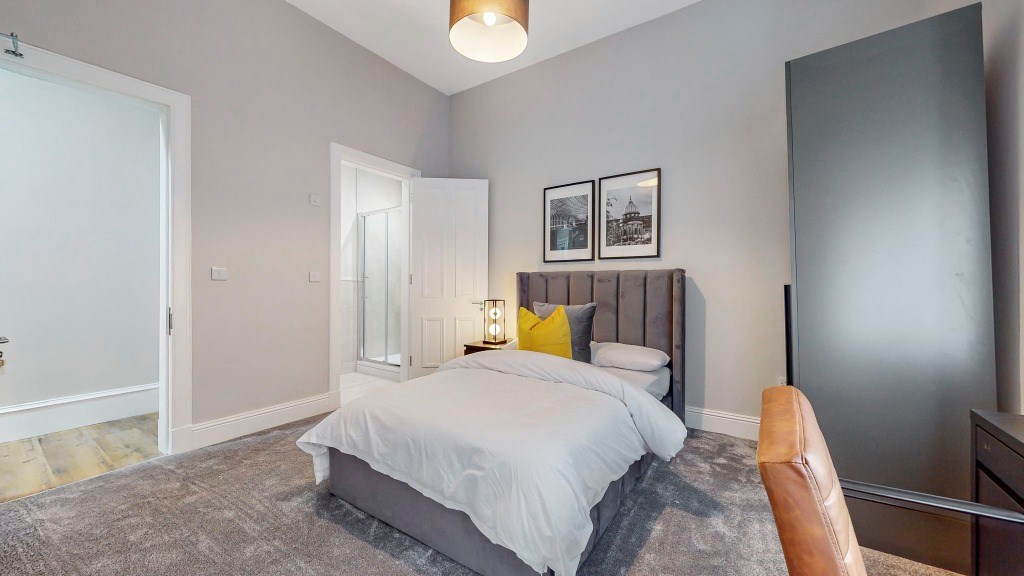 Accessed via its own main door, the property opens into a welcoming hallway leading to four fully furnished double bedrooms, one with en-suite, a sleek modern shower-room, separate WC, and a beautifully designed open-plan dining kitchen complete with brand new appliances, including a dishwasher. The property further benefits from newly fitted sash and case windows throughout.