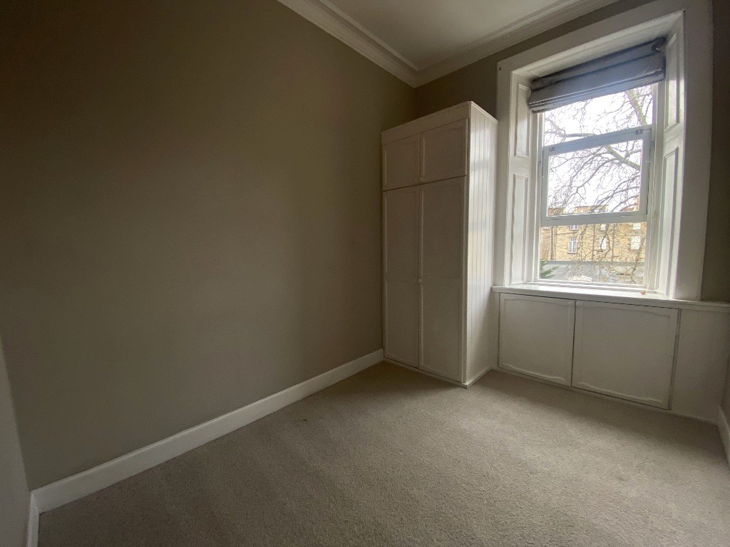 The feature of this property is the spacious living room, with three large bay windows allowing plenty of light into the room. The living room has space for a round 4-seater dining table and two large sofas or an armchair. The room is centred by a decorative fireplace with surrounding mantle piece. The room has beautiful cornicing and an open Edinburgh press. From the living room you can access the study, which is perfect for those who work from home, or it could be used as a small library room.
