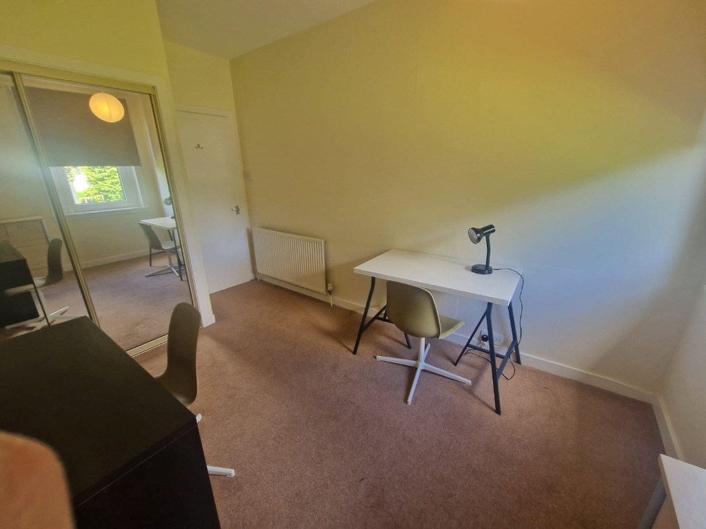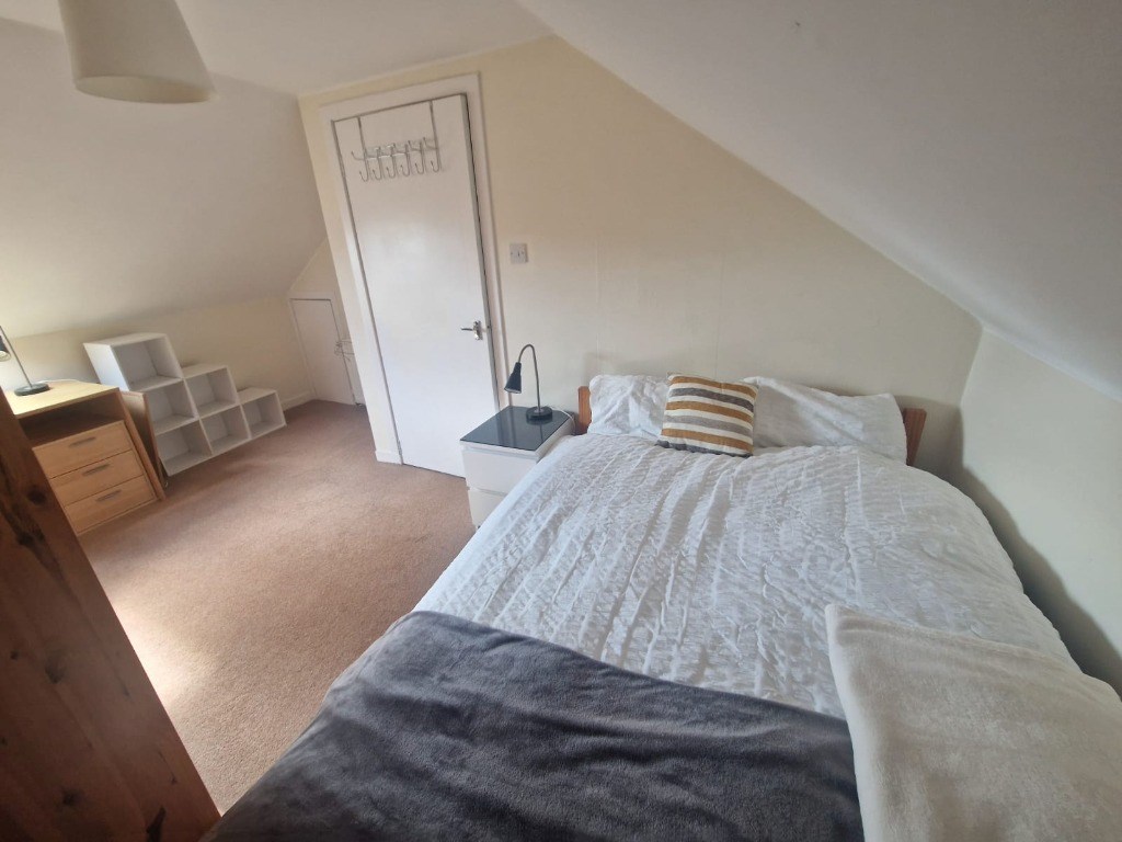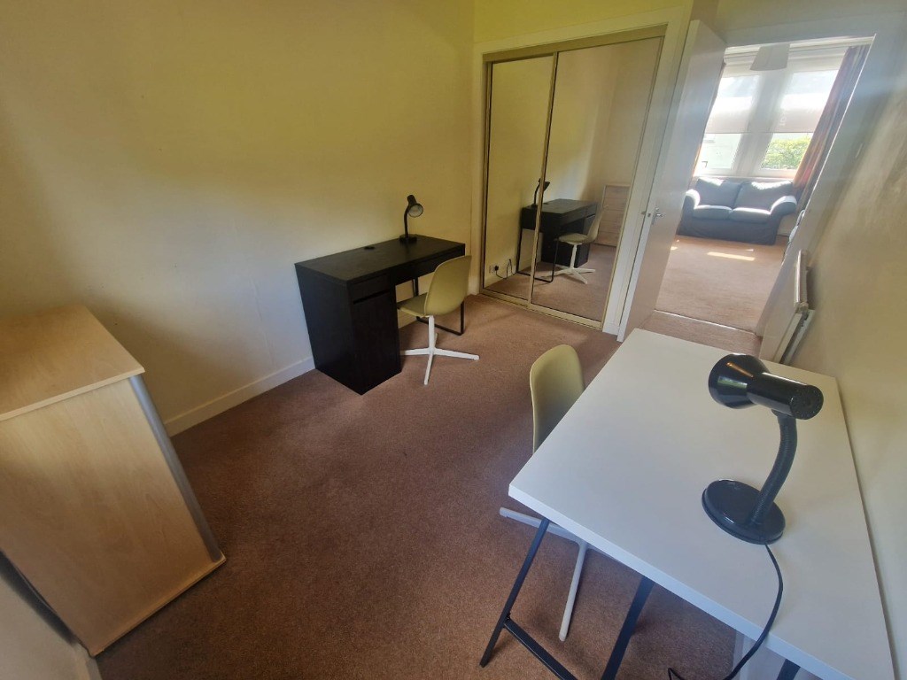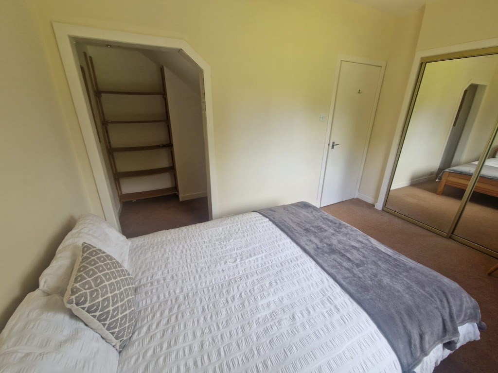 This self-contained property is entered through its own front door. The bright lounge is furnished with 2 comfy sofas, a TV stand and a dining table. Located off the lounge is a study room with two desks ad a fitted wardrobe allowing extra storage space. The kitchen features a breakfast bar and is equipped with all of the usual modern appliances including a washing machine, fridge freezer, gas hob and oven. Completing the ground floor accommodation is a modern shower room in excellent condition. Upstairs, the property has two double bedrooms both containing large wardrobe space and freestanding furniture.