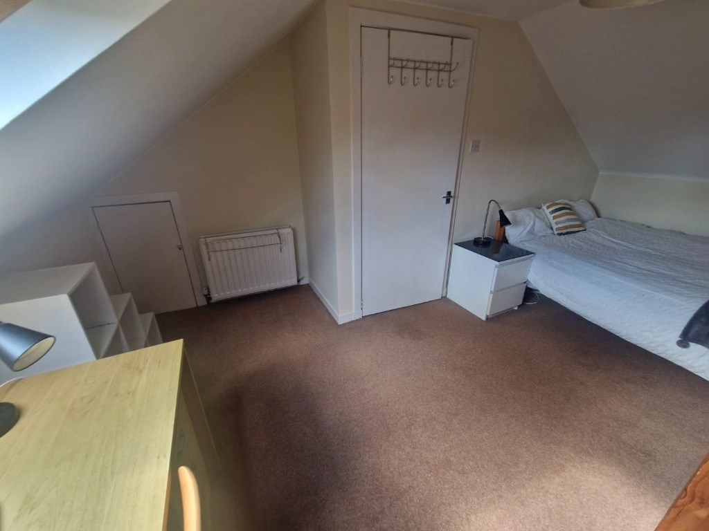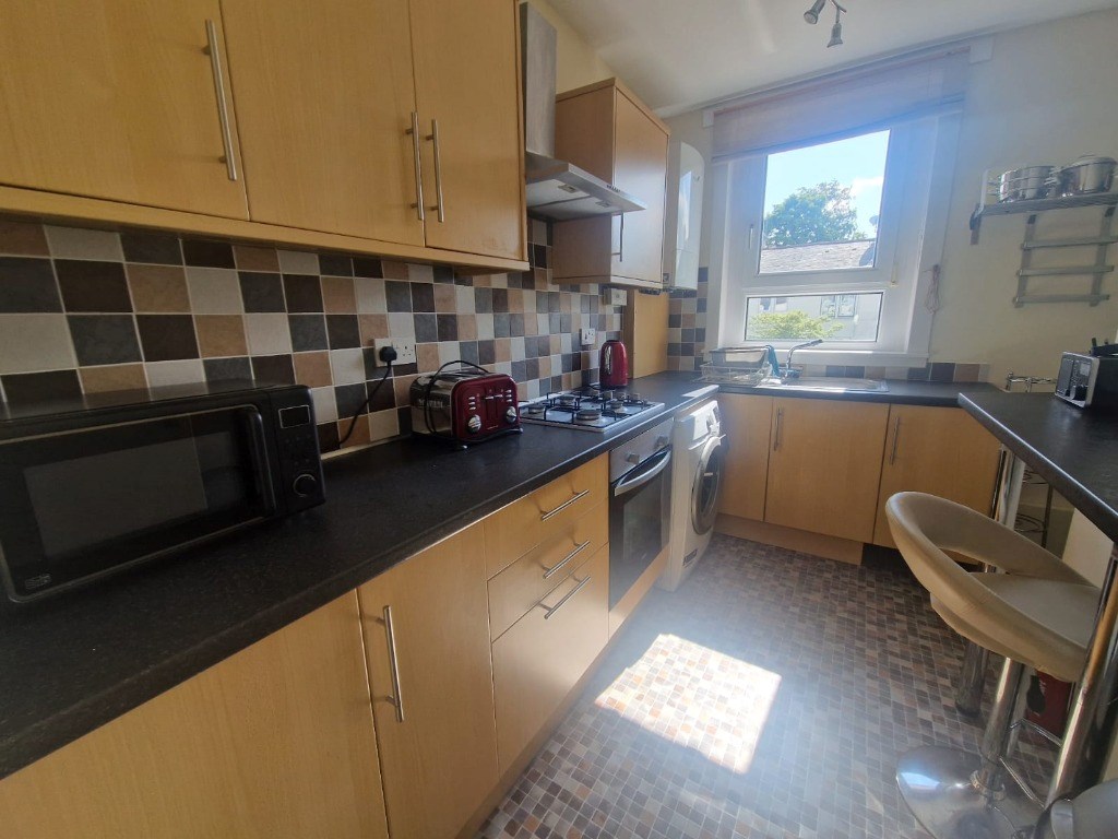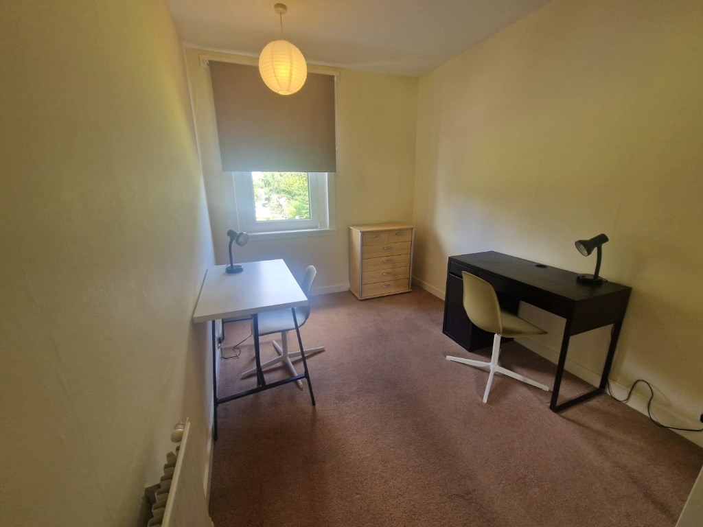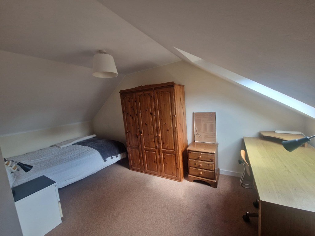 This self-contained property is entered through its own front door. The bright lounge is furnished with 2 comfy sofas, a TV stand and a dining table. Located off the lounge is a study room with two desks ad a fitted wardrobe allowing extra storage space. The kitchen features a breakfast bar and is equipped with all of the usual modern appliances including a washing machine, fridge freezer, gas hob and oven. Completing the ground floor accommodation is a modern shower room in excellent condition. Upstairs, the property has two double bedrooms both containing large wardrobe space and freestanding furniture.