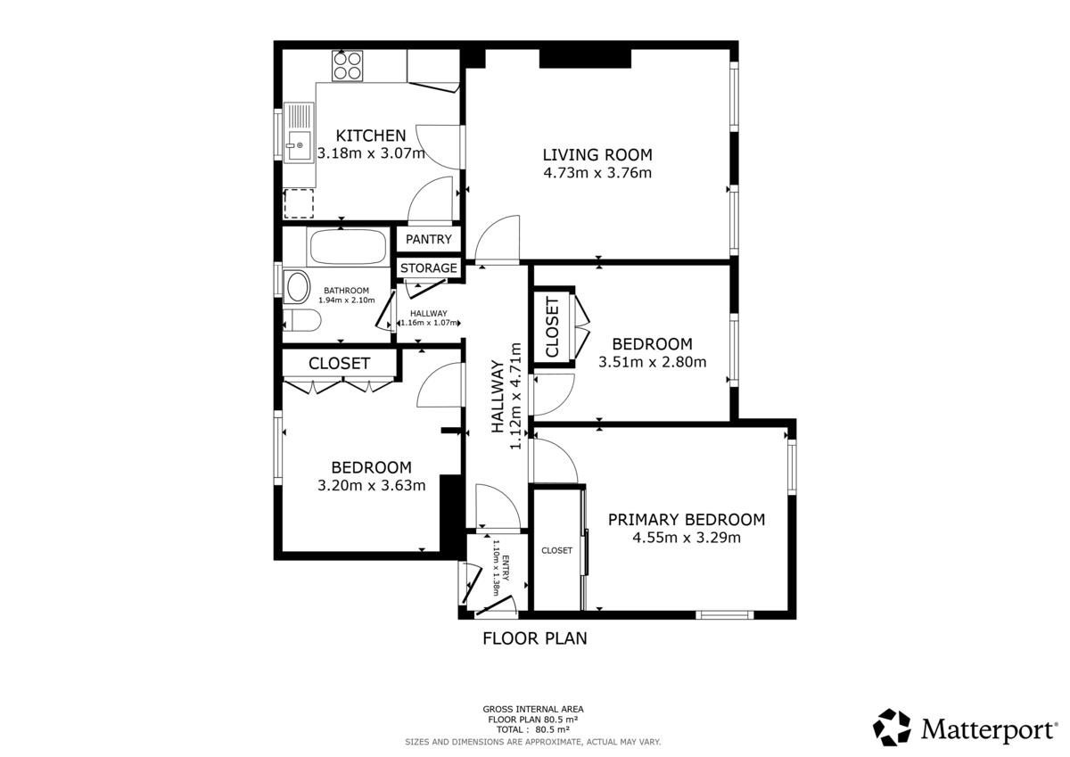 BATHROOM The bathroom for this property is located down the hall and left as you enter and boasts a well-lit interior with chequered tile scheme walls. The room itself contains a toilet, sink area, mirror and an impressively large bathtub that doubles up as a shower. One large, blurred window creates a flow of great natural lighting.
