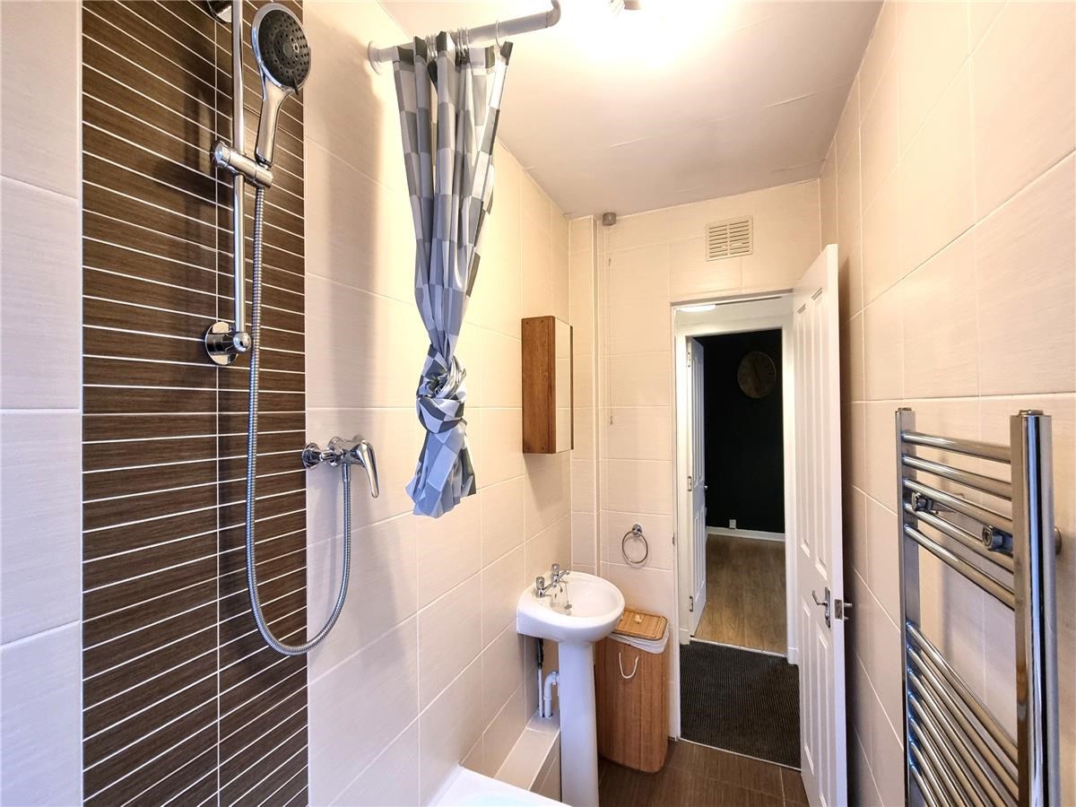 This top floor property comprises of; entrance hallway; lounge with a sofa; kitchen with a fridge, electric hob and oven, washing machine, and an extractor fan; double bedroom with build in storage; and a bathroom with a shower over the bath.