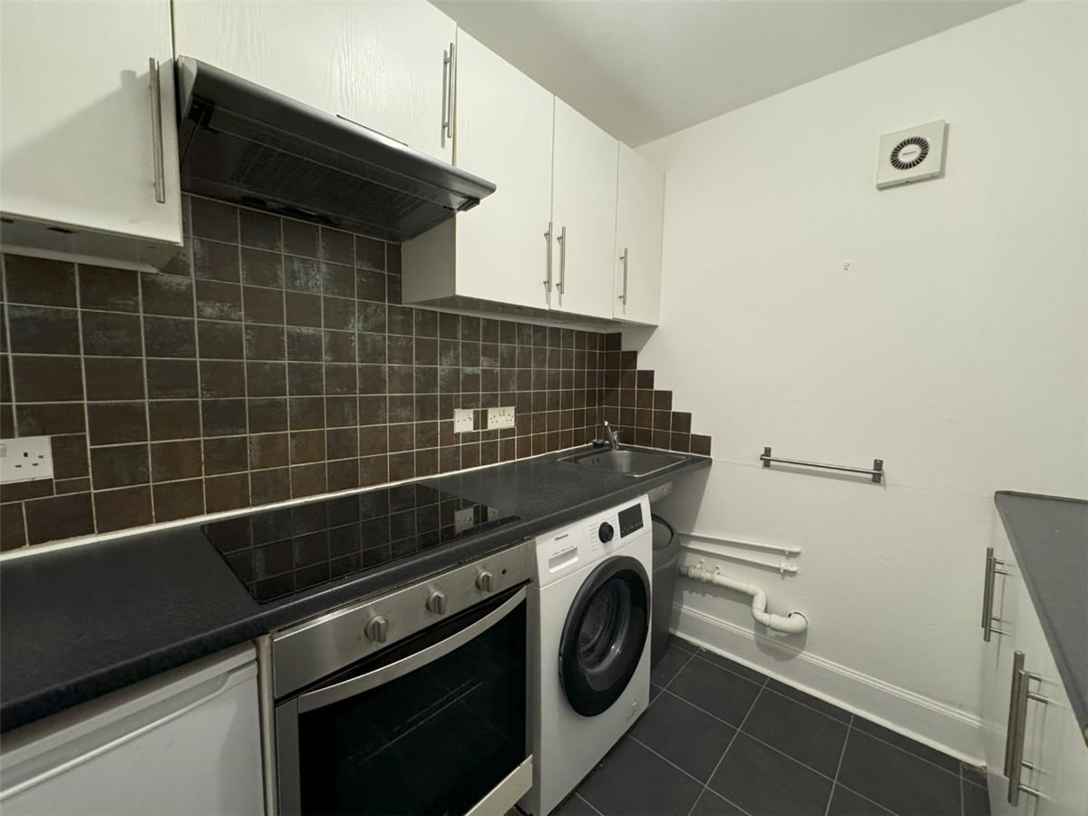 The flat features an inviting entrance hall, a bright and airy living/dining room, and a well-equipped fitted kitchen with a gas hob, oven, fridge freezer, and washing machine. The bathroom offers a generous three-piece suite, while both bedrooms provide ample space with fresh new carpets and decor.