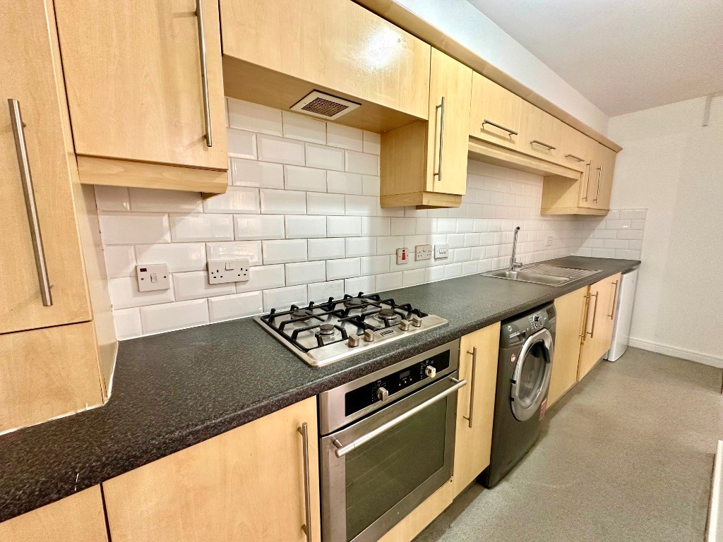This bright and spacious accommodation comprises 'L' shaped hallway with storage cupboard, large open plan lounge with modern kitchen off complete with appliances including washing machine, gas hob, electric oven and under counter fridge, internal bathroom with modern white three piece bathroom suite, two double bedrooms, the master with en-suite shower room and built-in wardrobes.