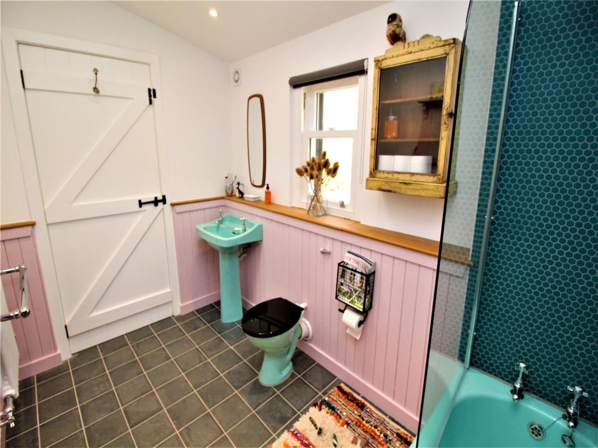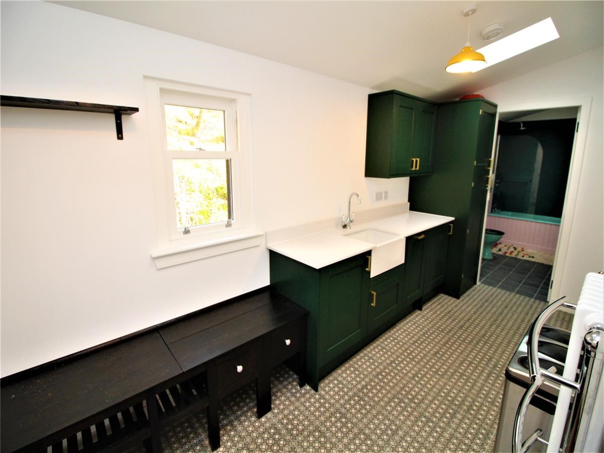 A generous utility room to the rear of the property promotes country living at its best with tasteful interior design of green utility units, quartz worktops and stylish tiled flooring. There is plenty of space for boots and outerwear with another Belfast sink and 2 Velux windows in the ceiling allowing plenty of natural light to flow through. The bathroom also reaps a stylish finish with a colourful WHB, WC and Bath.