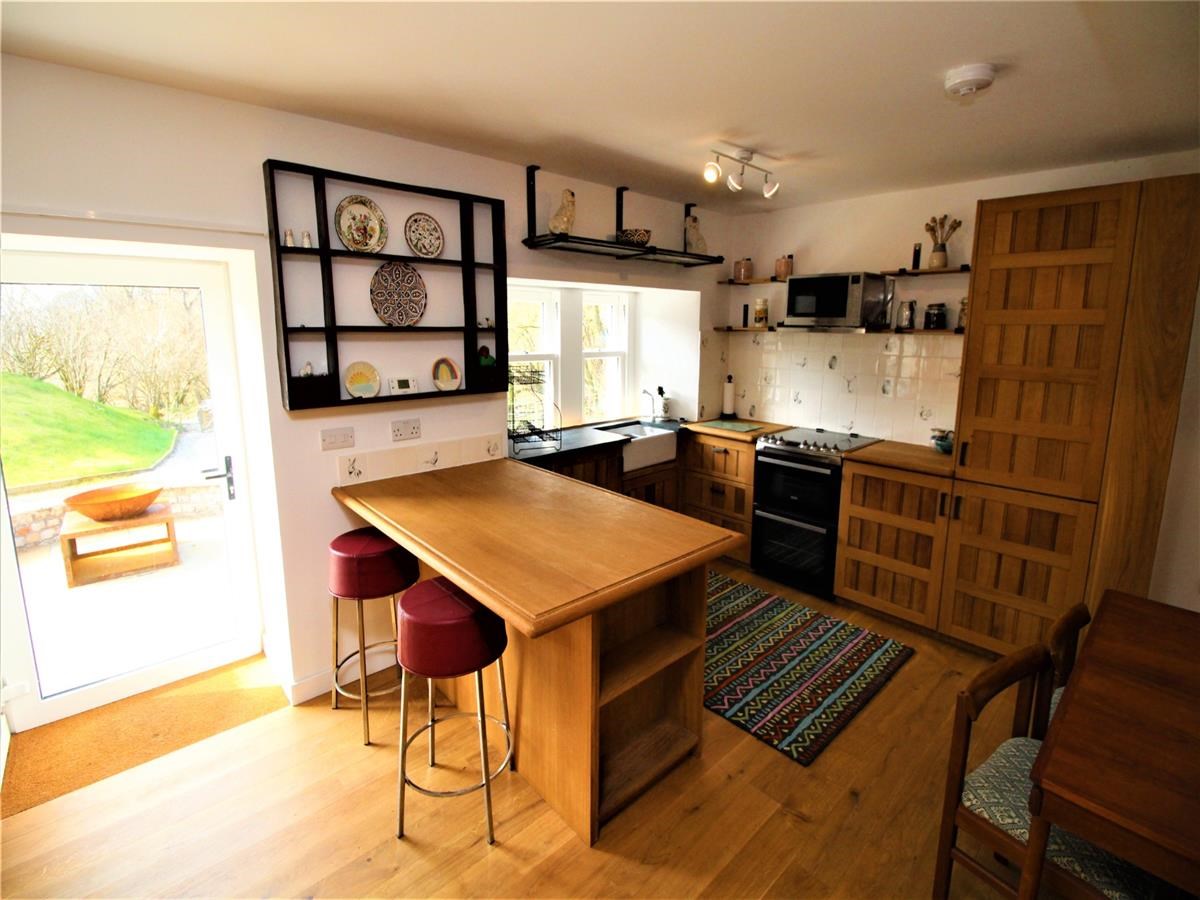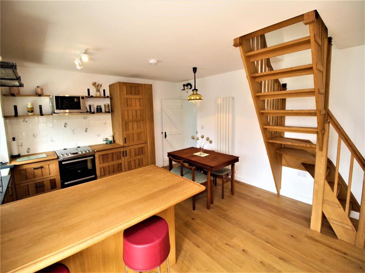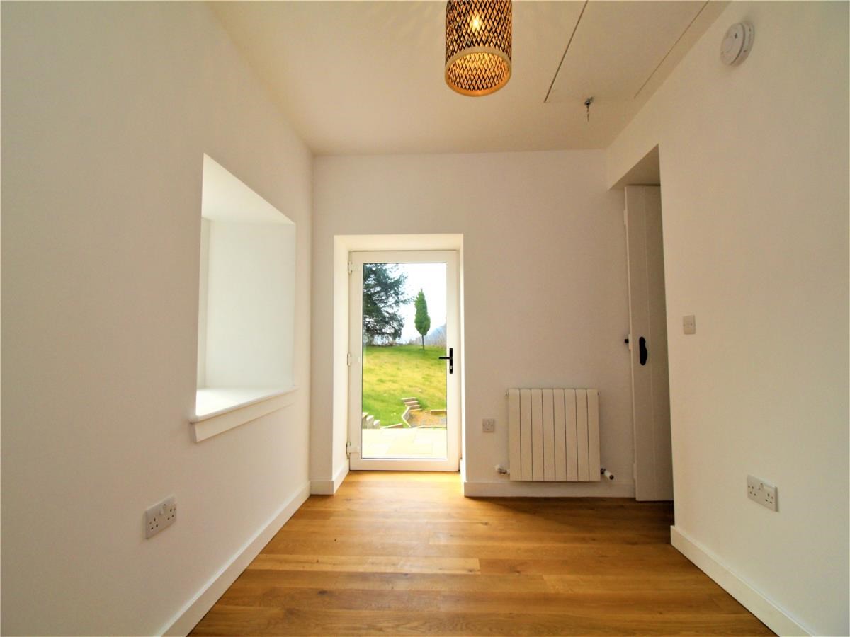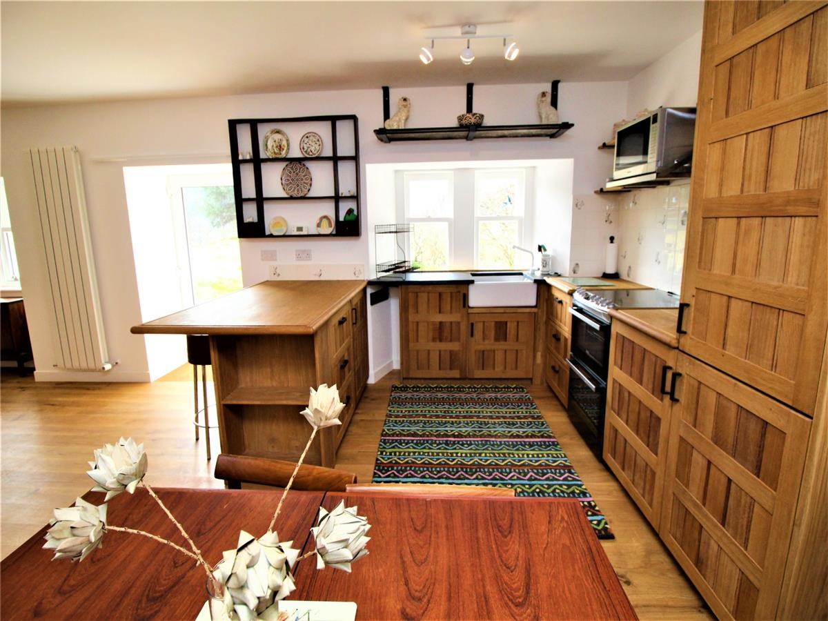 The property compromises of a large open plan kitchen / living room, utility room, large family bathroom, bedroom/ study, and two double bedrooms upstairs. The outer door leads to the open plan reception area with recessed matwell, stylish open plan sitting and dining room with engineered oak hardwood flooring. Within the living room there is a exposed natural-stone feature wall with an inset log burner on a flag stone hearth. The newly fitted oak hardwood kitchen is immaculately presented with a Belfast sink and a combination of slate and hardwood worktops.