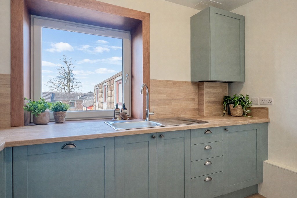 The newly fitted, stylish kitchen provides a practical layout with integrated appliances including dishwasher and full fridge freezer. There are two well-proportioned double bedrooms, both benefiting from built-in wardrobe storage. Finally, a bright and clean shower room. A storage cupboard in the hall houses the washing machine and tumble dryer.