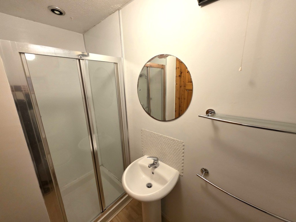 En Suite With a white suite incorporating the w.c. and wash hand basin, which has attractive tiling and fixed mirror above, this room also includes a shower cubicle with wet wall linings and a mains connection. Wall mounted heater. Extractor fan.