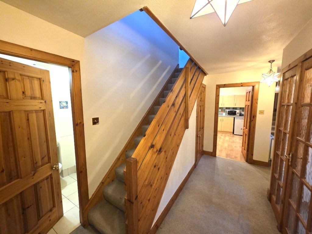 Hallway The hallway displays all the pine wood finishings and doors, has a deep silled window to the front, an understair store and access is given to the lounge, dining kitchen and the mezzanine master bedroom with en suite.