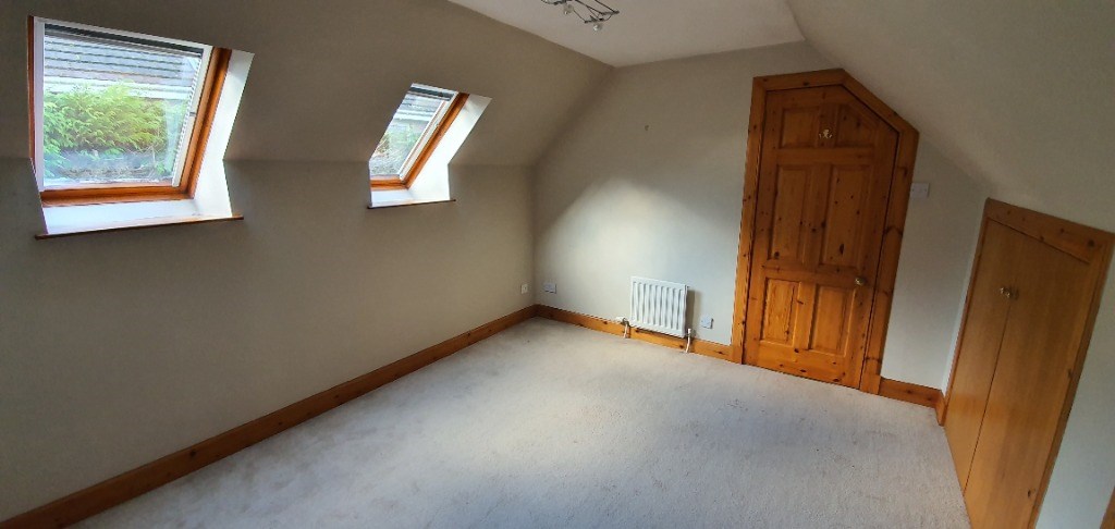Bedroom 312’6” x 10’6” [3.81m x 3.21m] approx. This double bedroom incorporates wall to wall wardrobe storage and two deep silled velux windows. Spotlights. TV point.