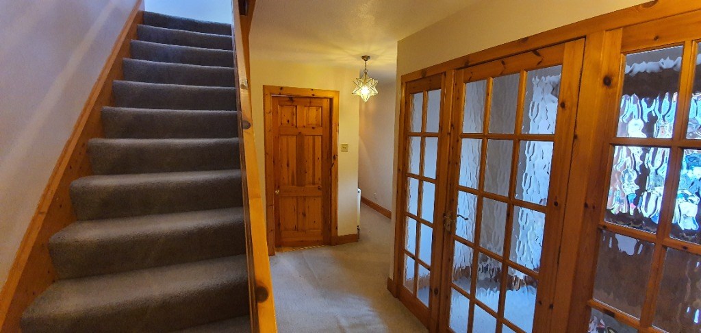 Vestibule 16’9” [2.06m] approx. in width The vestibule is entered via a covered portico and half glazed entrance door with slide glazed panels. Half glazed door to hallway. Built-in cloaks cupboard.