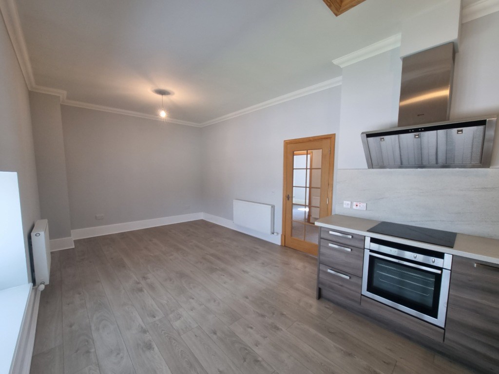 Accommodation comprises of: Contemporary open plan lounge and dining kitchen with high ceilings, finished with modern base and wall units and integrated appliances, including, fridge/freezer, dishwasher, washer/dryer, oven and induction hob; 2 bedrooms, both with built in storage; huge, modern bathroom which features a white suite, including separate bath and showering facilities; outside, there is private residents’ parking is available and a children’s play area, as well as factored grounds.