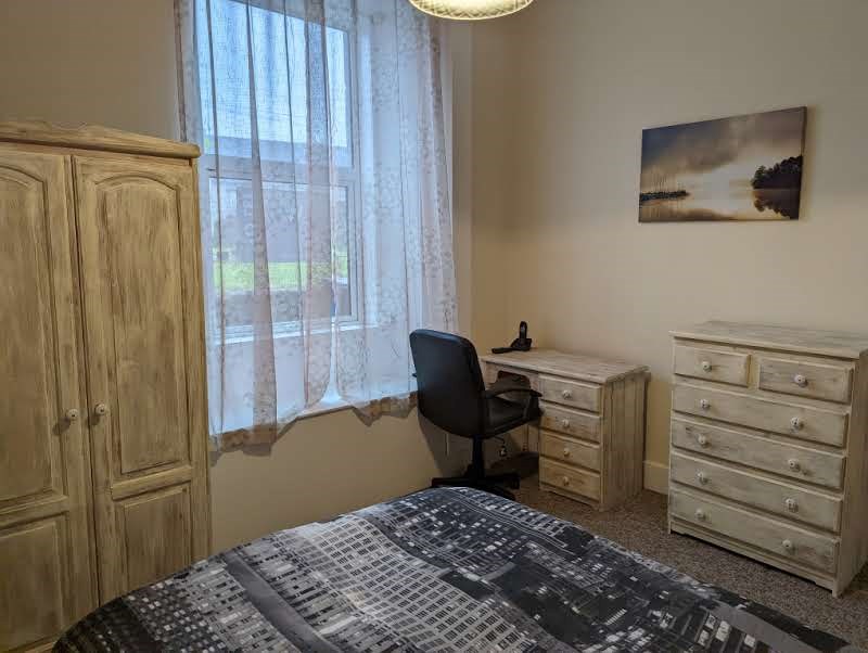 Located on the ground floor, the hallway leads to all rooms. The property has an open plan lounge/kitchen which has been furnished with two leather sofas, a coffee table and has a feature fireplace. The kitchen area is equipped with all of the usual modern appliances such as a washing machine, fridge freezer, cooker & oven. Spacious double bedroom with freestanding furniture & a desk. Modern bathroom with shower over the bath. GCH & DG throughout. Available for immediate entry. EPC rating: E. Landlord Registration Number: 394074/110/16031.