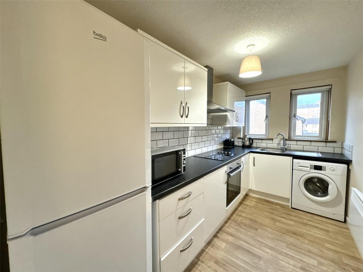 The property is in walk-in condition and tastefully decorated with neutral tones throughout. The bright and spacious lounge offers a welcoming living space, while the fully fitted kitchen features a sleek white backsplash and comes equipped with an electric hob, oven, fridge/freezer, and washing machine.