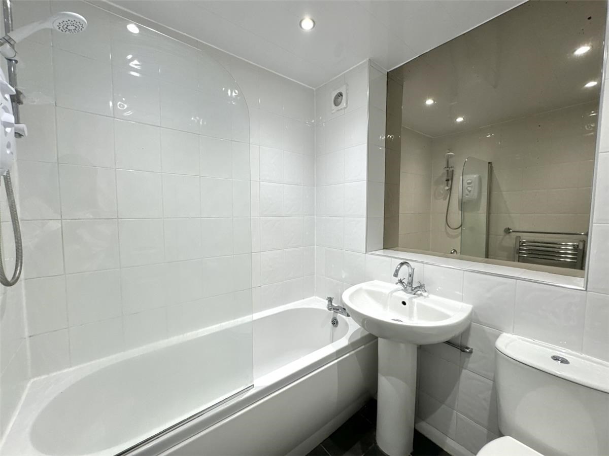 The three-piece bathroom is fully tiled and includes an over-bath shower for added convenience. The generously sized bedroom benefits from a built-in closet, and the property features laminate flooring throughout.