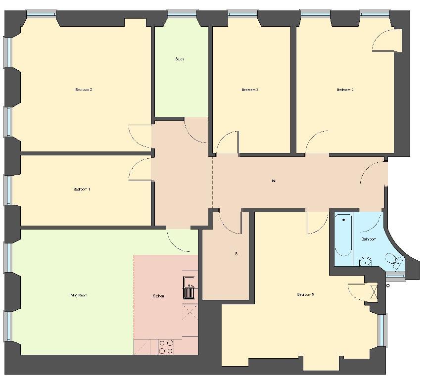 This property is offered fully furnished and comprises of large open plan kitchen with integrated appliances and granite effect worktops, lounge, 5 double bedrooms and a bathroom with power shower and heated towel rail.