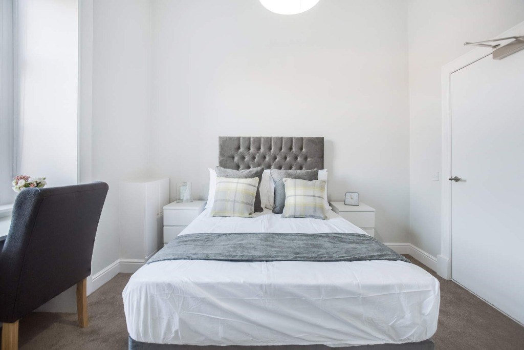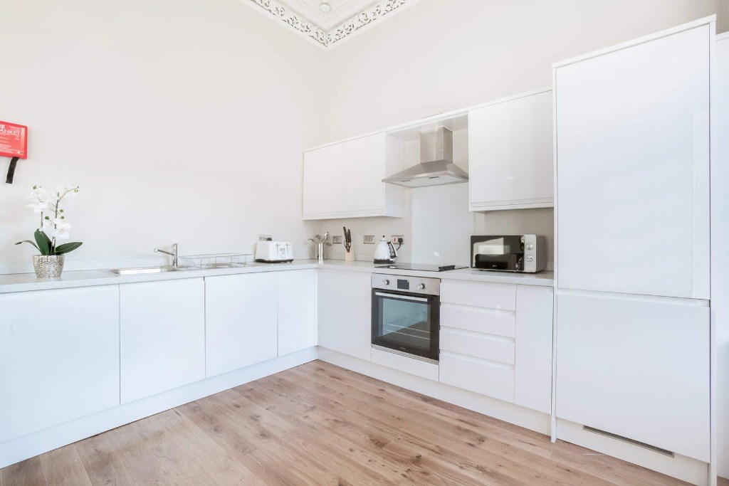 This impressive traditional Victorian converted townhouse occupies a first-floor position and is accessed via a secure entry system. This property comprises of spacious open plan kitchen/living room with a fully fitted kitchen with appliances and a three piece fully fitted family bathroom with shower over the bath. Also in the property are two spacious double-bedrooms that have been decorated and furnished beautifully. The elegant kitchen includes high gloss fixtures, integrated appliances and fittings. The bathroom comes complete with a three-piece suite, electric shower and towel radiator.